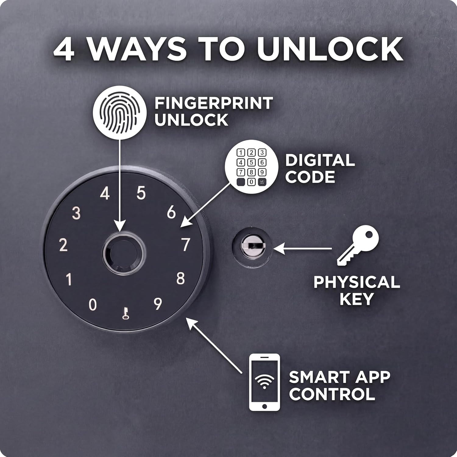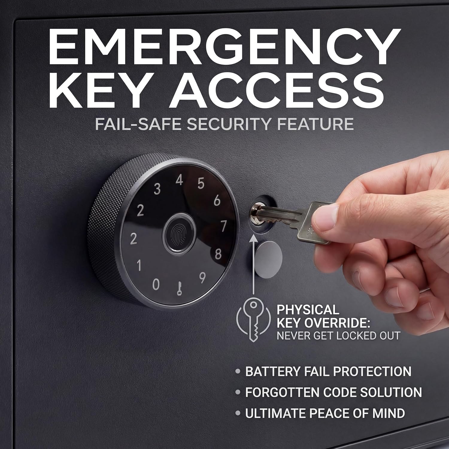| Included Components | Physical emergency keys (2), Mounting hardware kit (screws + anchors), User manual / quick start guide, Hex Key, Rest Tool, Mounting Bolts (2) |