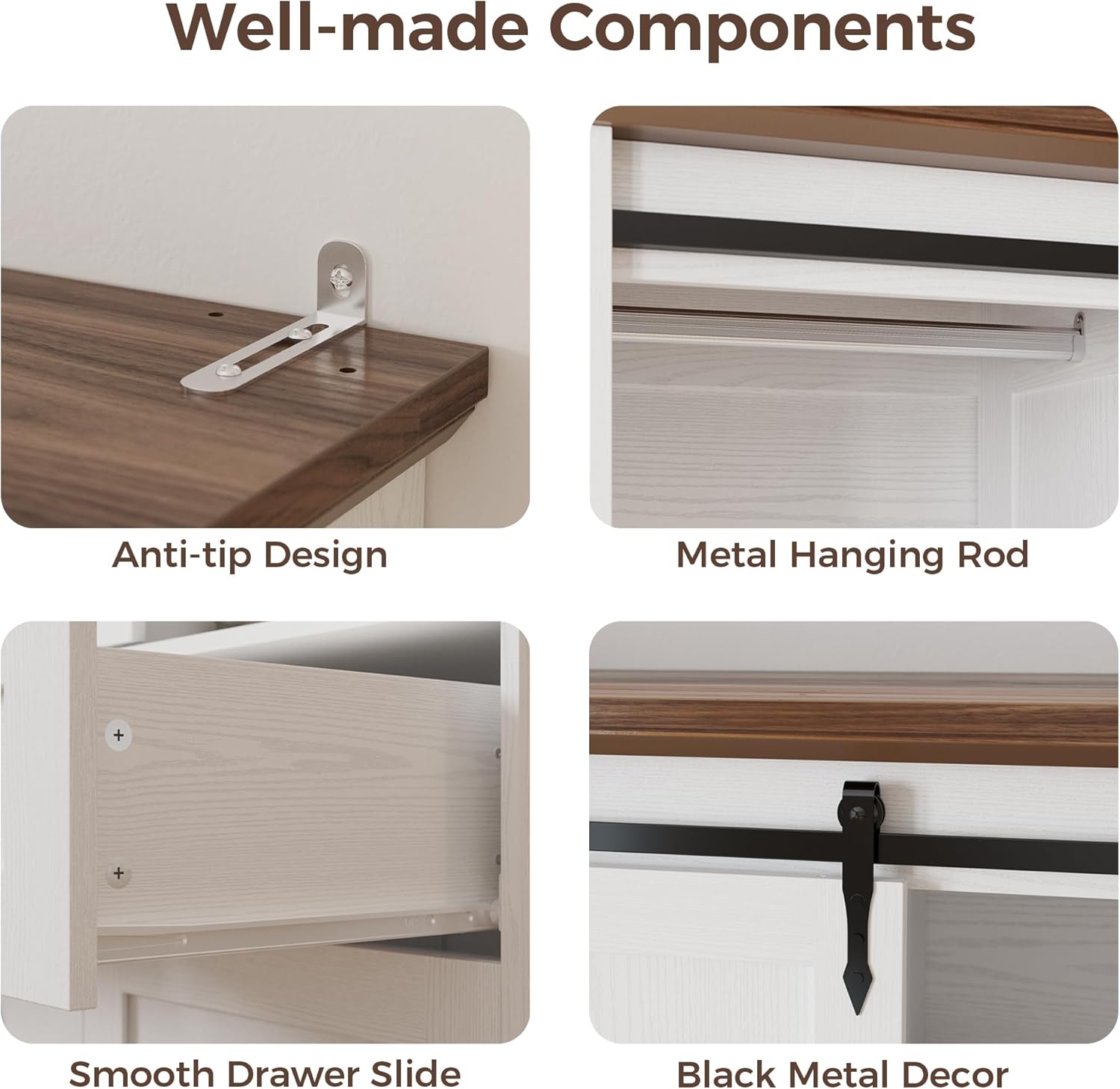 | Storage Options | Hanging Rod, Shelves, Drawers |