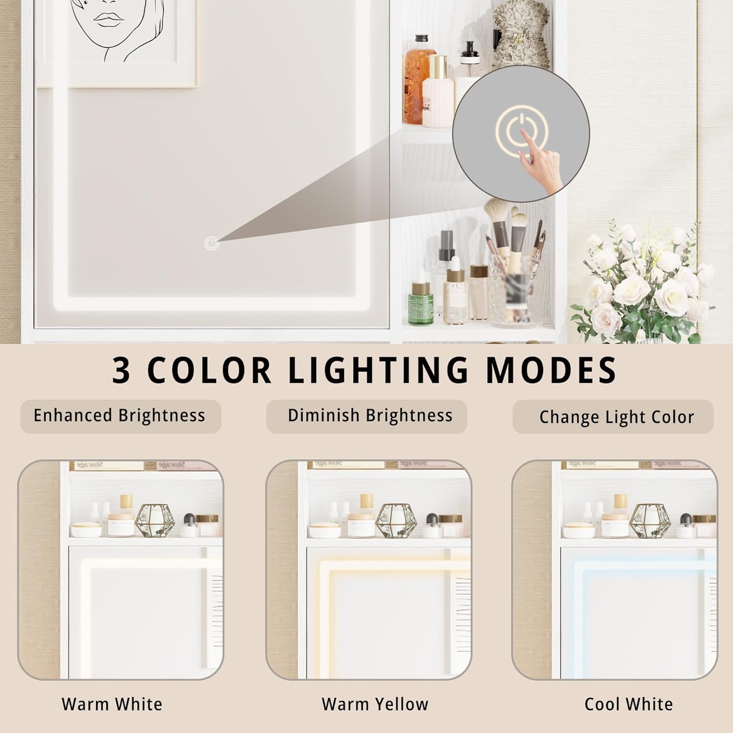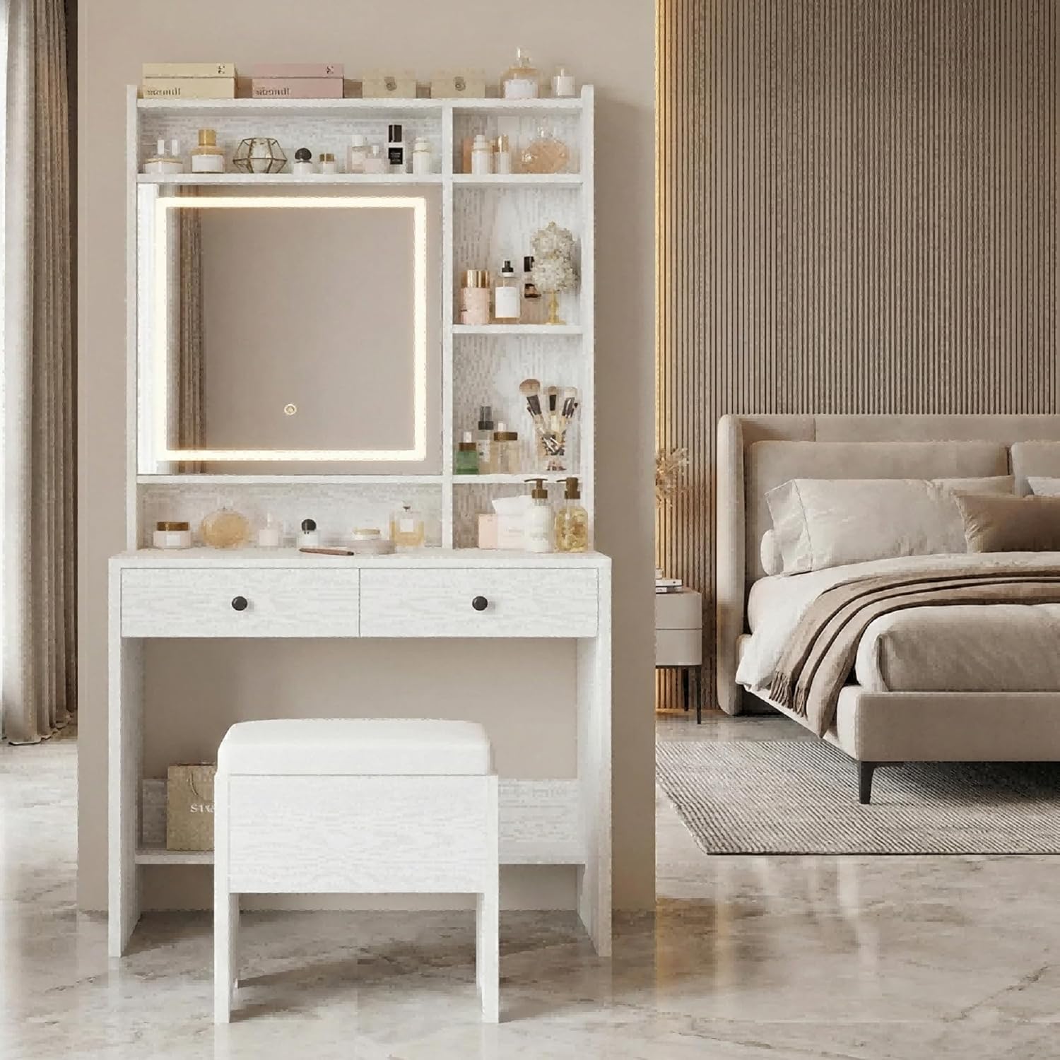 | Included Components | Mirror, LED Lights, Jewelry Cabinet, Drawers, Storage Shelves |