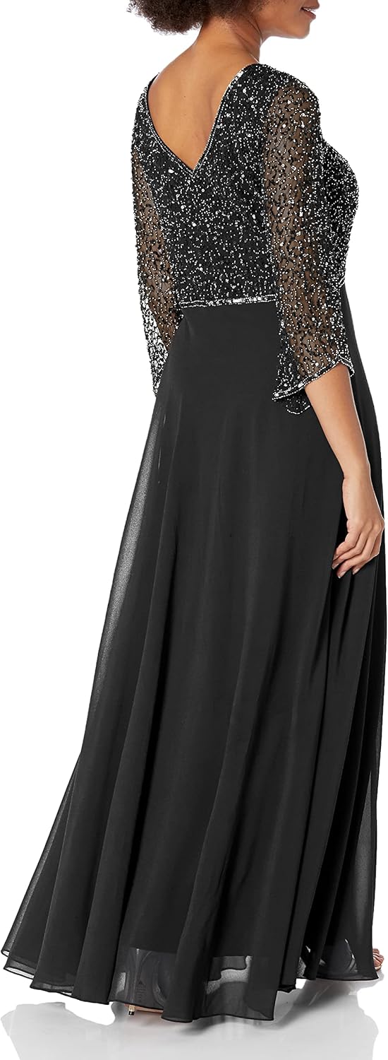 Pure elegance 3/4 sleeve v-neck empire waist with hand-made beaded detail on top long plain gown on bottom.