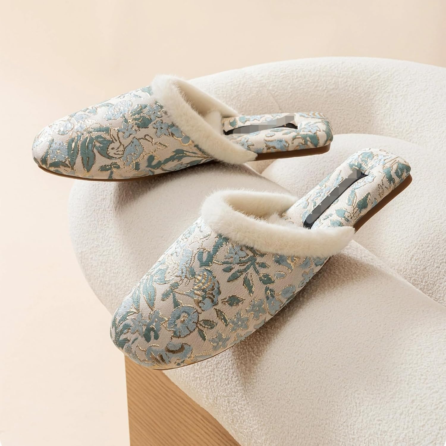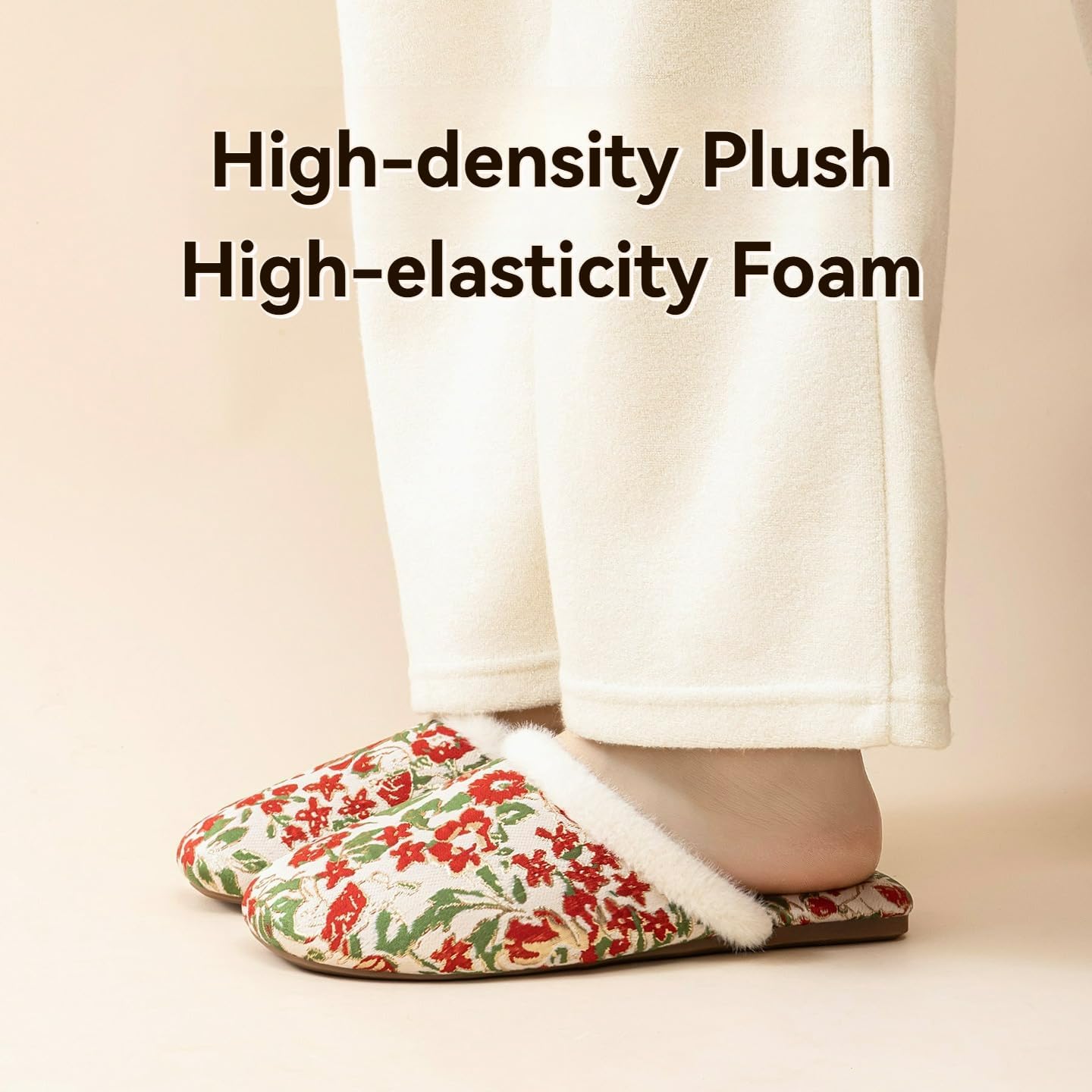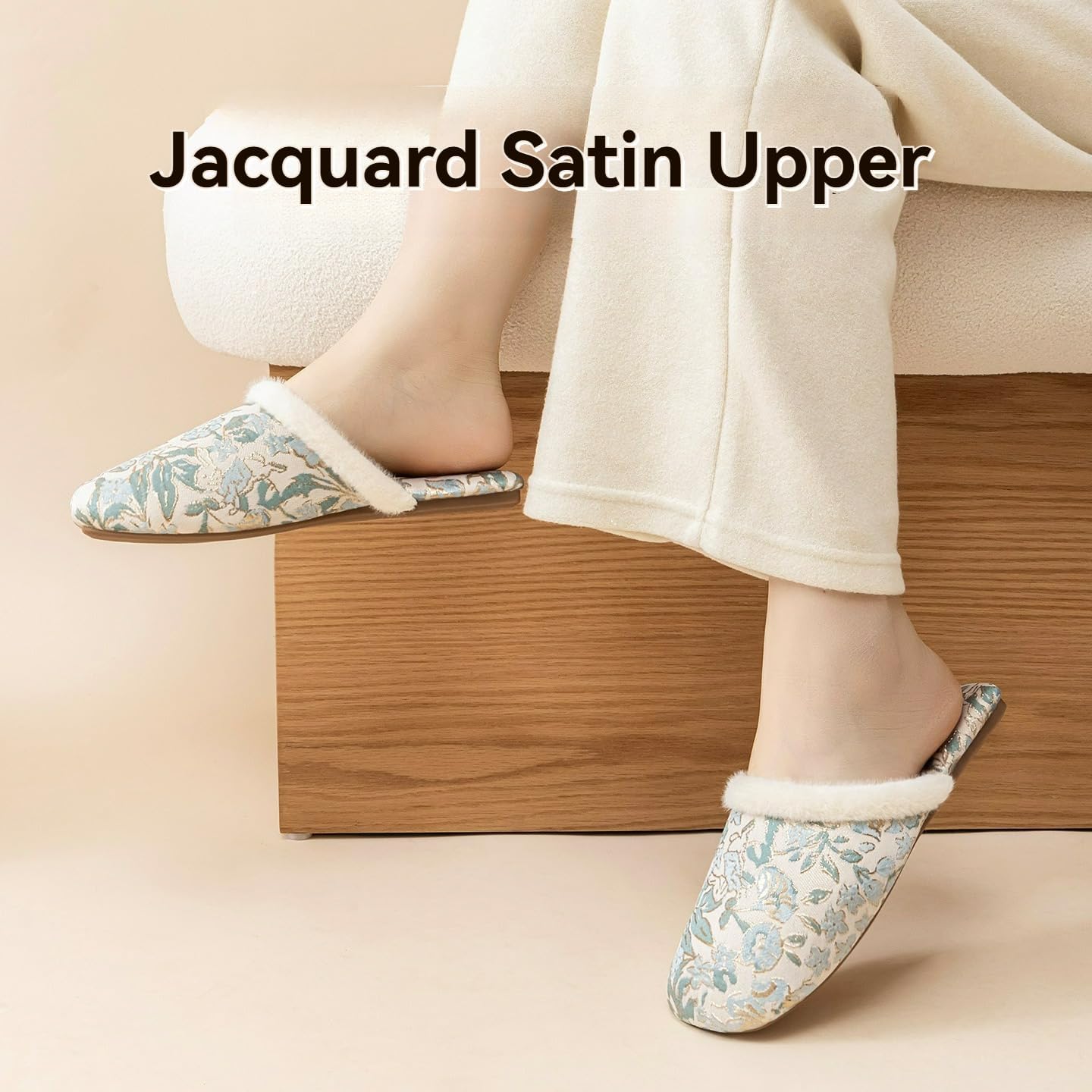 Step into everyday elegance with these slippers for women—where luxurious jacquard satin meets cloud-like comfort. Designed as fuzzy slippers for serene home life, they blend sophisticated shine with deep warmth for your most relaxed moments. The high-density plush lining wraps your feet in softness, while a high-rebound sponge midsole provides cushioned support that feels gentle with every step. Together, they create a double-insulated layer that locks in heat—perfect for chilly floors or winter mornings. A flexible TPR sole ensures stable, non-slip performance on common indoor surfaces, all while remaining lightweight and whisper-quiet. Please note: these slippers are intended for indoor use only to preserve their delicate satin finish and plush interior. Fit tip: These slippers run true to size for standard foot widths. However, due to the thick plush lining and contoured shape, those with wide feet or high arches/insteps should choose one size up (e.g., US 7 → US 8) for optimal room and comfort. Spot clean with a damp cloth to maintain luster and softness. Elevate your at-home routine with warmth, grace, and comfort—every single day.