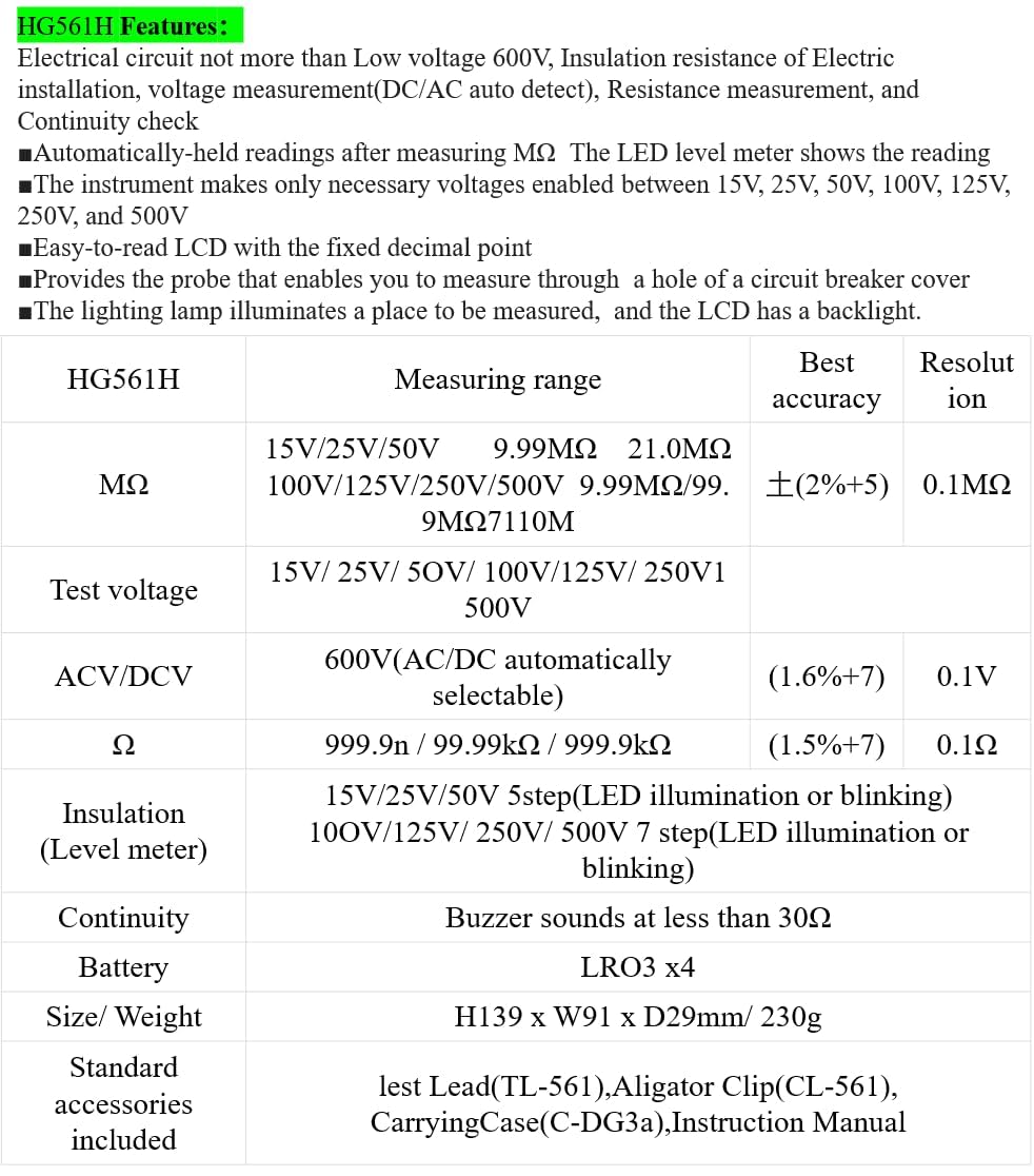| Included Components | Sanwa-HG561H |