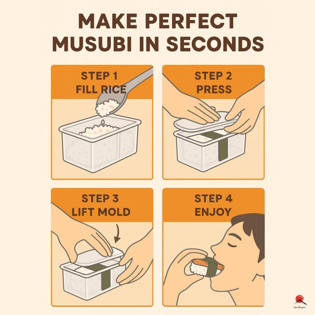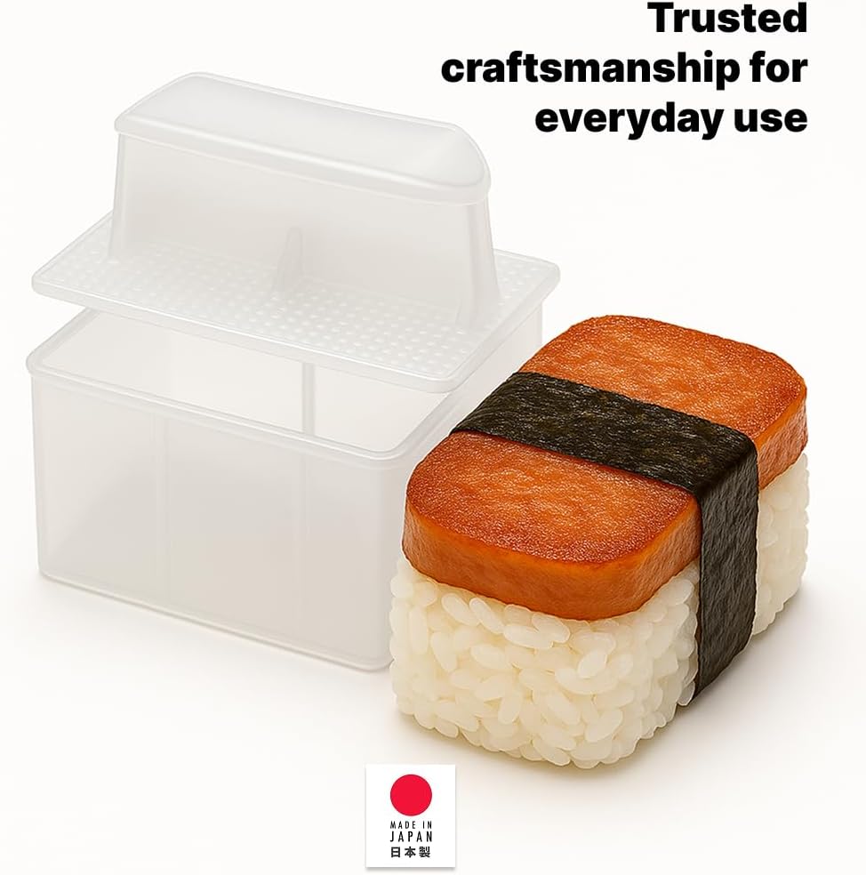 Bring authentic Hawaiian and Japanese flavors to your kitchen with the JapanBargain 10 Pack Musubi Maker. Designed and made in Japan, this high-quality rice mold lets you create uniform musubi, sushi rice cakes, or onigiri with ease. Crafted from food-safe, BPA-free plastic and featuring a non-stick surface, the mold ensures smooth, clean release and effortless cleanup every time. Each press measures about 4 inches long, 2-1/4 inches wide, and 2 inches high—the ideal size for traditional musubi or rice cakes. Simply place the mold on a sheet of nori, fill it with rice, press gently, add your favorite toppings such as luncheon meat or vegetables, press again, and wrap to finish. This 10-pack set is perfect for home cooks, restaurants, or catering events—helping you make multiple servings quickly and consistently. Whether you prefer classic Hawaiian-style musubi, teriyaki chicken versions, or vegetarian options, this tool inspires endless creativity. Enjoy a true taste of Japan and Hawaii with every bite.