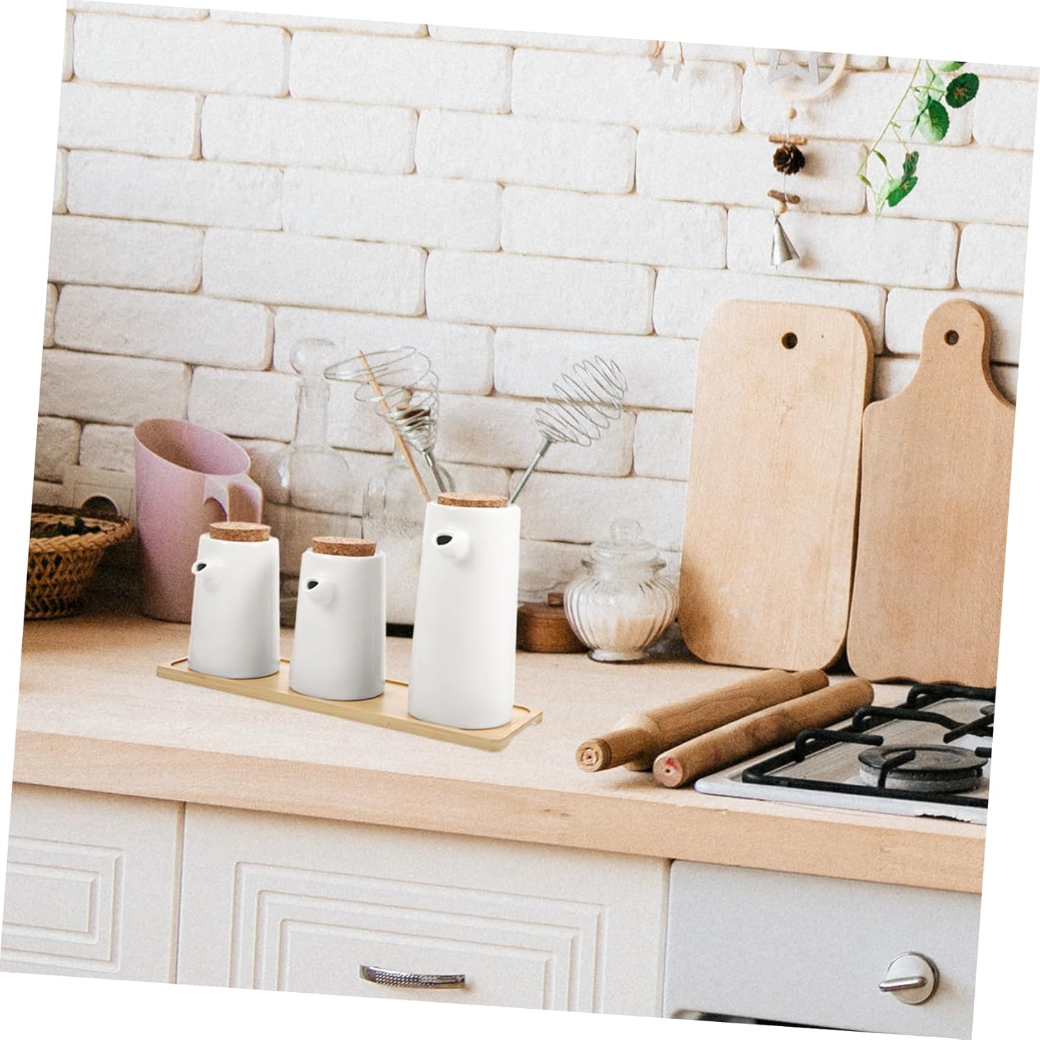 Package Include 1 × large size oil dispenser 2 × small size soy sauce dispensers 1 × wood tray Characteristics -Color:White kitchen vinegar bottle -Size:16.00X10.00X6.50cm/6.29X3.93X2.55in (Large Pot) soy sauce dispensers -Material:Ceramic, wood soy sauce container -Size:11.70X9.00X6.50cm/4.60X3.54X2.55in (Small Pot) vinegar holders -Size:30.00X9.50X1.00cm/11.79X3.73X0.39in (Wood Tray) soy sauce bottle - The sauce dispenser with lid can keep your seasoning fresh, and protecting the seasoning from the or other dirty things vinegar pot. - This set of sauce dispenser bottle with tray can be a great housewarming present choice ceramic vinegar pot. - This set also contains a wooden tray that can be used to hold these sauce bottles on your dinning table or kitchen vinegar jar. - The sauce dispenser is suitable for home, hotel, restaurant, buffet, shopping mall, supermarket, etc ceramic oil bottle. - The smooth ceramic surface make sauce dispenser easy to clean, can be maintained in a condition ceramic soy sauce bottles.Goods Descriptionkitchen supplies The vinegar bottle has delicate Japanese style look, will bring pleasure to your cooking time.ceramic vinegar jars This is a ceramic vinegar bottles and tray set, practical and safe.japanese vinegar dispenser They can be used for safely storing and dispensing your oil, vinegar, soy sauce, cooking wine, etc