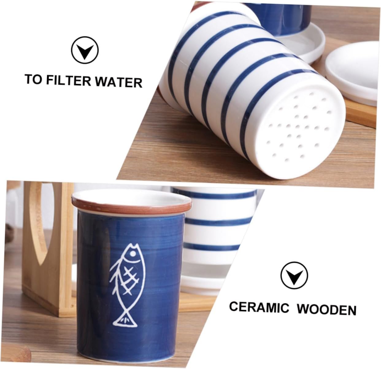 Package Include 1 x set storage container Characteristics -Color:Chocolate -Material: Ceramic wooden -Size: 20.80X14.20X9.50cm/8.17X5.58X3.73in - The product is meticulously made and it is wonderful for daily life cutlery holder for countertop. - Fine workmanship and unique appearance its popularity kitchen storage rack. - Perfect for storing and draining your tableware cutlery organizer. - Made of premium ceramic material, and long time use. - Simple and generous product appearance design.Goods Informationkitchen storage is unique and creative in daily use.cutlery organizer This is a kitchen storage canister, which can store different cutlery, such as spoon, chopsticks, fork, etc.cutlery holder for countertop It is made of material, which is and for use. A nice storage container for you