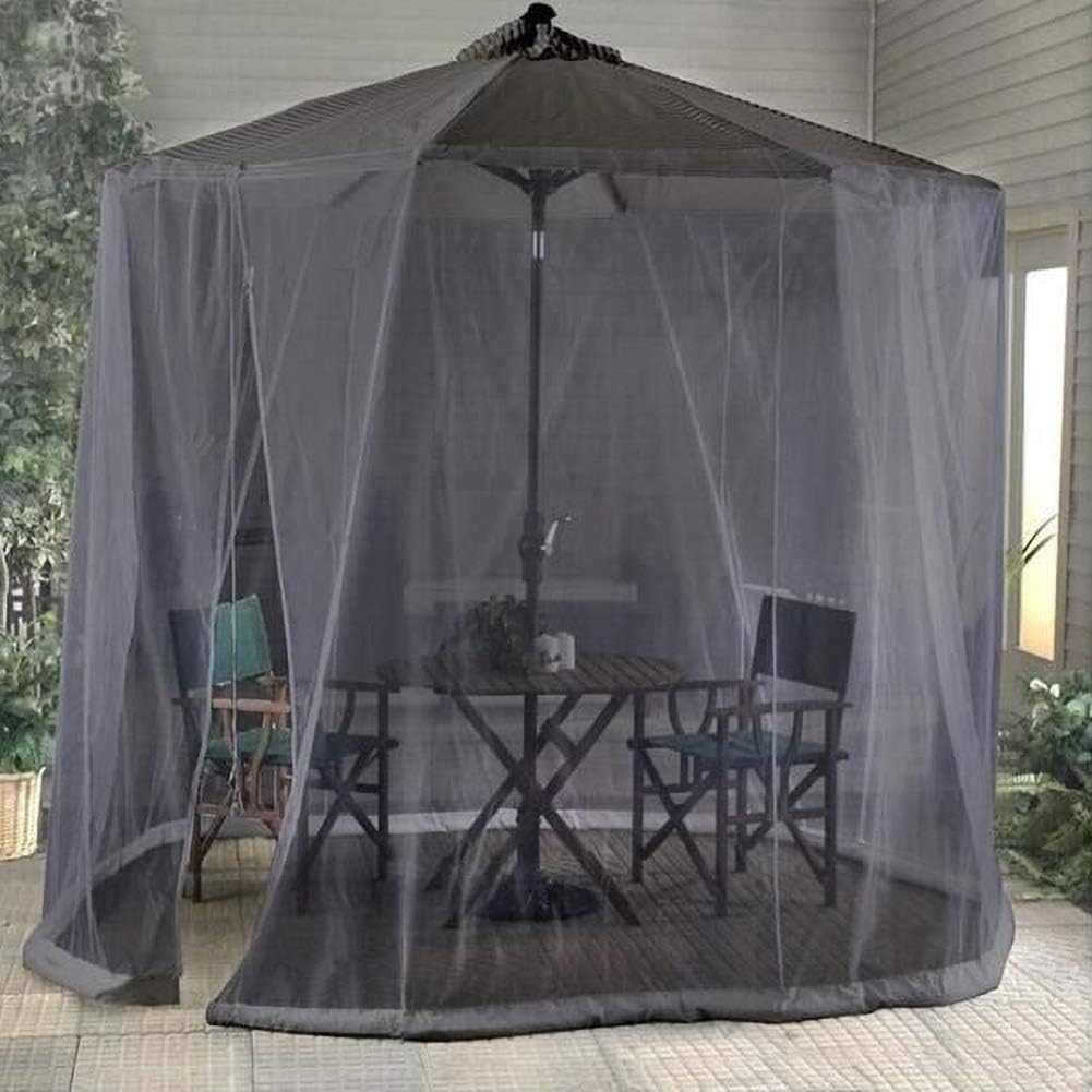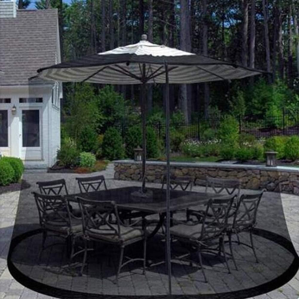 Feature: Fully adjustablein diameter & height with draw string top closure fits up to a 9ft to10ft Umbrella lightweight construction The cinch top adjusts to your patio umbrella canopy for easy installation in minutes Zippered entrance allows easy access and will not obstruct your view Keep the screen secure by filling the bottom tubing with water Please note: Patio umbrella and base are not included Specifications: Color: Black Dimension:Diameter 300 * height 230cm(9.8*7.5ft) Net Weight: 2.4 Lbs Package Include:1× Umbrella Netting