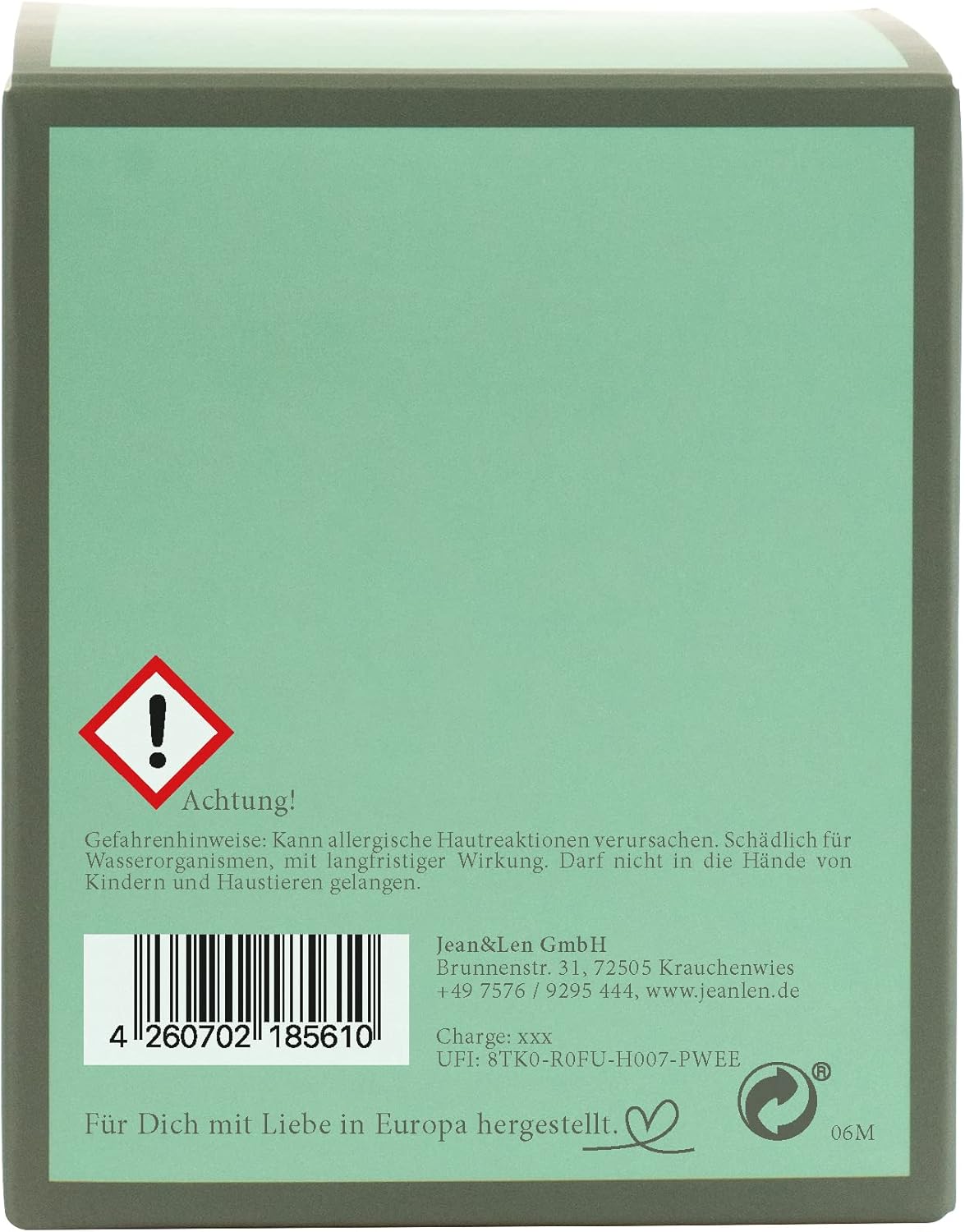 Jean & Len Premium Scented Candle Rosemary & Ginger Our high-quality rosemary and ginger scented candle is made from vegan wax and has a burning time of approx. 40 UK hours. The fresh and spicy scent of rosemary and ginger plunges the four walls of the house into a pleasant cloud of scents, while the soft glow of the candle ensures a pleasant atmosphere. The handmade candle sits in a minimalist glass and will be a must-have in your home. In addition, the scented candle is an ideal gift. Enjoy the sweet glow of the candle and let yourself be enchanted by the spicy fragrance. Product Details Vegan wax compound Fresh and spicy scent of rosemary and ginger Vegan Use When you first light it, let the candle burn for at least two hours until the entire surface is liquid. This allows the wick to burn evenly without making holes. To avoid the formation of soot, regularly shorten the wick by about 0.5-1 cm. To ensure regular combustion, Check after extinguishing the candle that the wick is vertical and centered. To obtain optimum combustion male, light the candle between 30 minutes and two hours. Jean & Len . Jean & Len was founded in 2013 by Leonard Diepenbrock. The idea: wonderfully fragrant treatments with a trendy look and do not take dust from the organic products. Inspired by the motto "What touches you becomes a part of yourself", the The range without Gedøns* is constantly expanding and now also includes stylish products for the home and the art of living. *Gedøns = ingredients that Len prefers to give up.