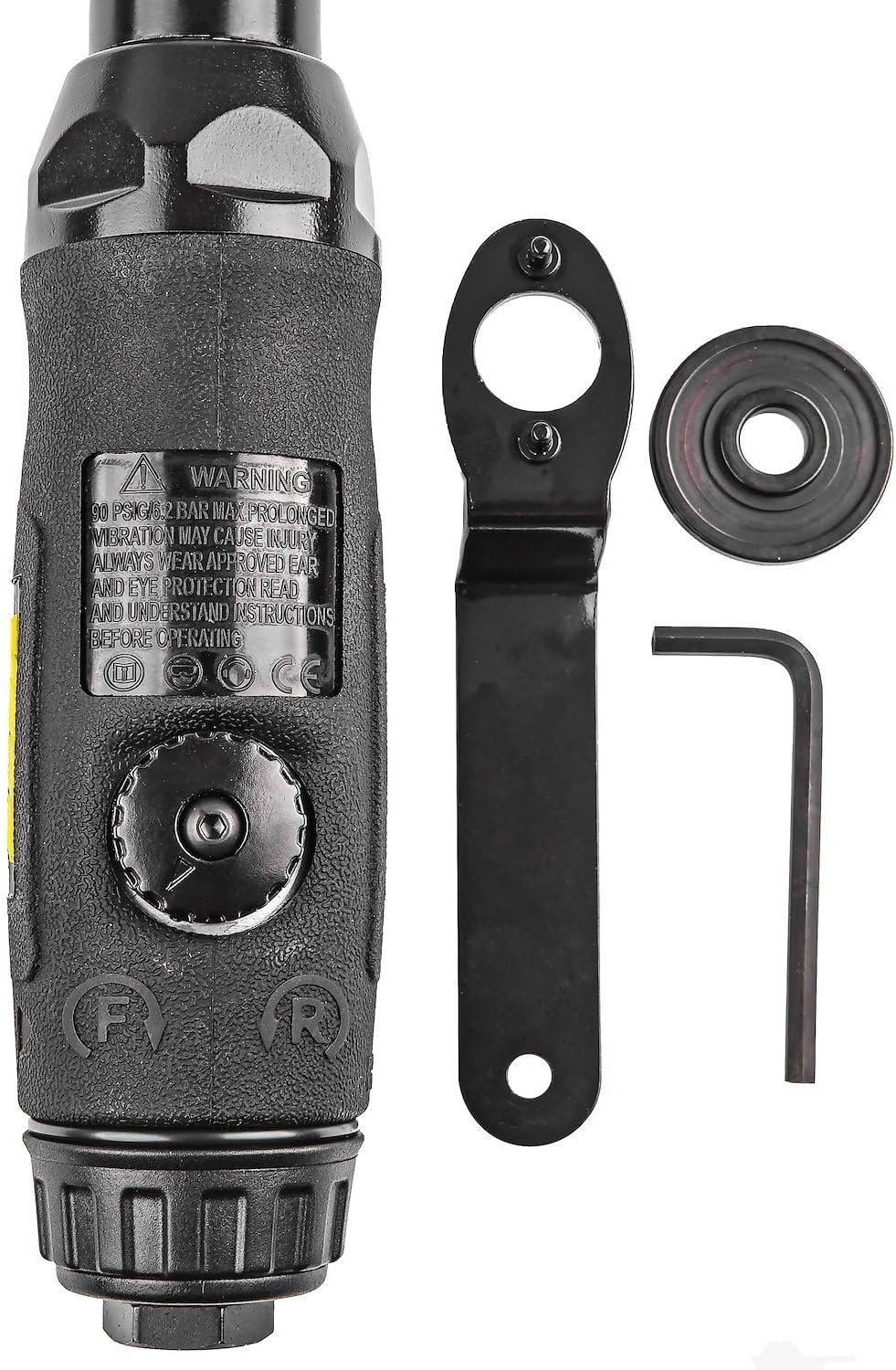 Extended Reach Air Cut-Off Tool13,000 RPM14 1/2 in. Overall LengthReversibleLow-Profile HeadBlack w/ JEGS LogoIncludes:4 in. Cut-Off WheelSpanner Wrench4 mm Hex Key3/8 in. & 5/8 in. Washers JEGS Extended Reach Cutt-Off Tool Features:Lightweight composite housing (3.20 lbs.)4 in. diameter cutting wheel tackles most cutting jobsExcellent for hard to reach areasAdjustable speed control allows you to make precise cuts13,000 maximum free RPM1/4 in. NPT female inlet portRequires 4.10 CFM continuous air flow90 psi maximum air pressureSafety lock-out lever prevents accidental throttle operationThe ideal shop tool for cutting through mufflers, tailpipes, nuts and bolts
