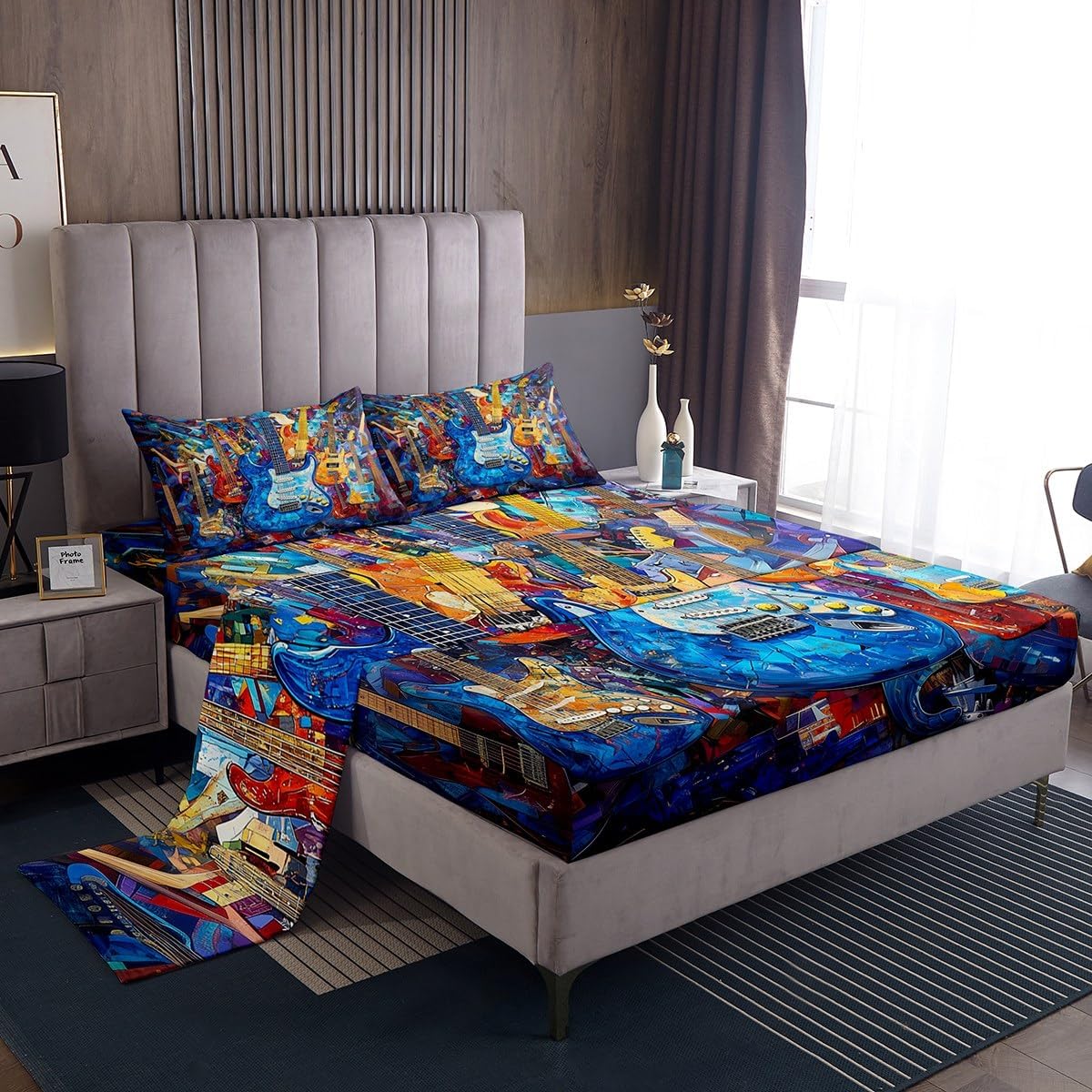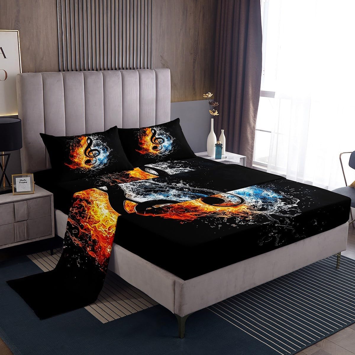 Our bed sheet is made of polyester fabric, lightweight and soft; stylish design is very suitable as room decoration for boys and girls; keep warm in winter and cool in summer; create a comfortable sleeping environment to make you fall asleep all night Range of size 1 twin fitted sheet 39 inch x 75 inch x 16 inch and 1 twin flat sheet 66 inch x 96 inch and 1 standard pillowcase 20 inch x 30 inch 1 full fitted sheet 54 inch x 75 inch x 16 inch and 1 full flat sheet 81 inch x 96 inch and 2 standard pillowcase 20 inch x 30 inch 1 queen fitted sheet 60 inch x 80 inch x 16 inch and 1 queen flat sheet 90 inch x 102 inch and 2 standard pillowcase 20 inch x 30 inch 1 king fitted sheet 78 inch x 80 inch x 16 inch and 1 king flat sheet 90 inch x 106 inch and 2 standard pillowcase 20 inch x 36 inch