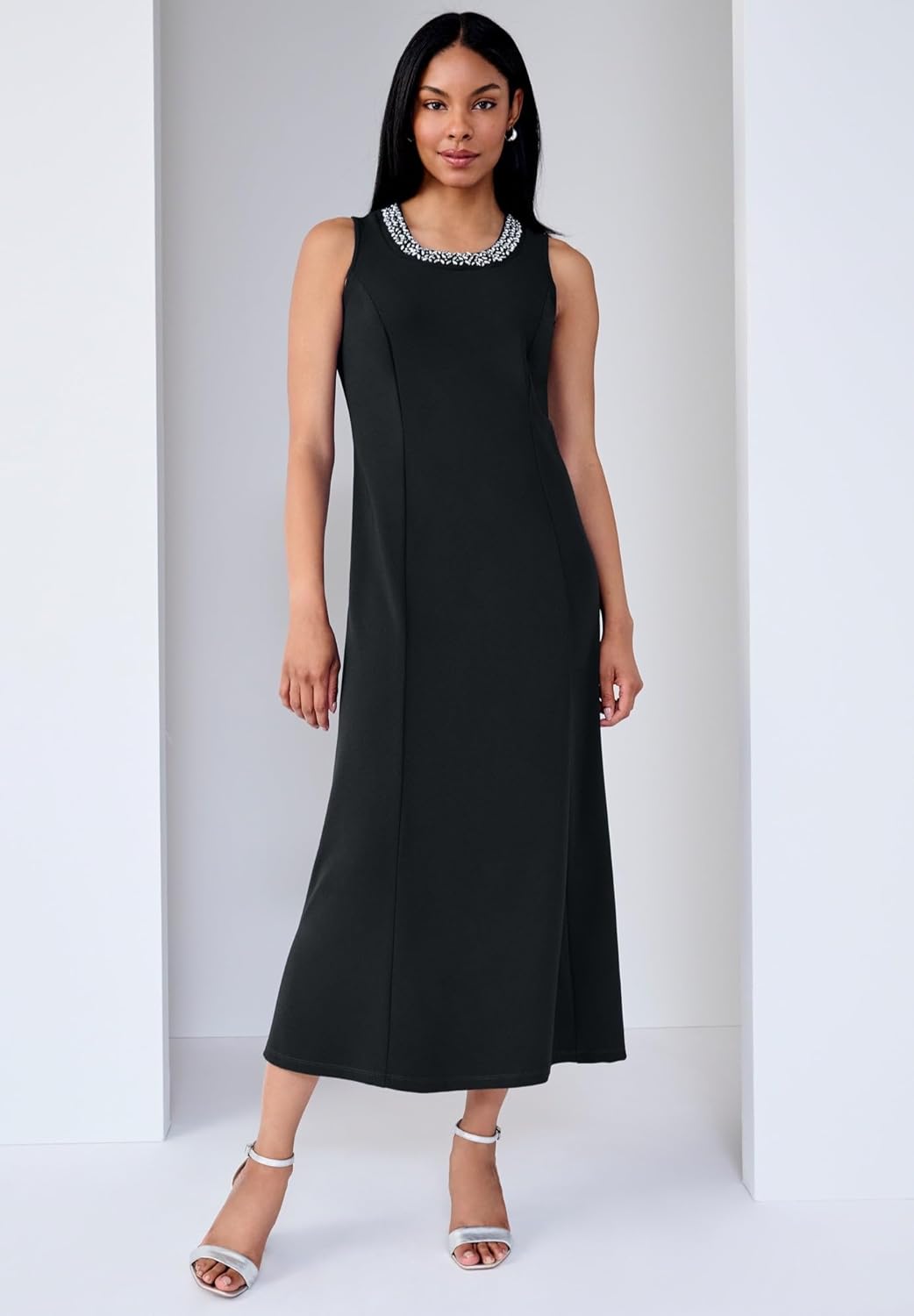 Featuring an eye-catching design and a figure flattering fit, there is not a thing about the Jessica London women's plus size 2-Piece Beaded Jacket Dress that isn't stylish. Beautifully beaded style that goes from corner office to corner table. Sleeveless A-line dress has back zipper; jacket has hook-and-eye closure. Sleeveless A-line dress br> Jacket with hook-and-eye closure br> 22" jacket; 53" dress br> Polyester/spandex br> Hand wash br> Imported
