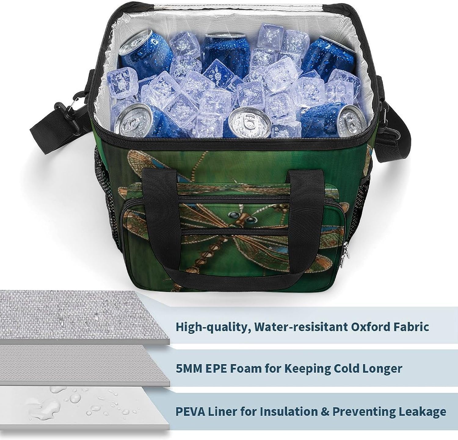 When you're looking for a reliable way to keep your food and drinks fresh while on the move, our Jewel Dragonfly insulated cooler tote is the perfect solution. Made from high-density Oxford cloth with an upgraded aluminum foil lining, it offers superior insulation that maintains the temperature of your items for hours. The leakproof design ensures no messy spills, and the sturdy construction means it can handle the rigors of daily use, whether you're commuting to work or heading out for a weekend camping trip.The 22.5L large capacity provides ample space for all your essentials, from sandwiches and salads to cans of soda and bottles of water. The comfortable 66cm straps make it easy to carry, and the compact vertical design doesn't take up unnecessary space in your car or backpack. Whether you're packing a meal for the office, preparing for a family picnic, or stocking up on groceries, this cooler bag has you covered.Forget about flimsy coolers that fall apart after a few uses or fail to keep your food fresh. Our reusable cooler tote combines practicality, durability and style in one package. Its neutral design works for everyone, and its versatility makes it a must-have accessory for anyone with an active lifestyle. Invest in a cooler bag that meets all your needs and simplifies your on-the-go eating experience. Lightweight Cooler Bags Oxford Cloth Cooler Bags Ice Packs Reinforced Handle Ice Chest Cooler Bag Tote Cooler Bag Versatile Cooler Bags Portable Insulated Cooling Everyday Cooler