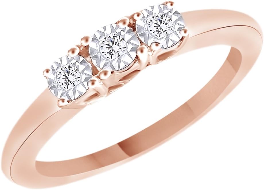 Jewelry has the power to be this one little thing that can make you feel Unique, You're going to love this Fabulous Ladies White Diamond Past Present Future Three Stone Ring In 14K Gold Over Sterling Silver (0.02 Ct) Simply beautiful! Makes a great gift for any Anniversary, Engagement, Wedding, Birthday, Holiday, Promise, Valentine's, Christmas or Special Occasion!