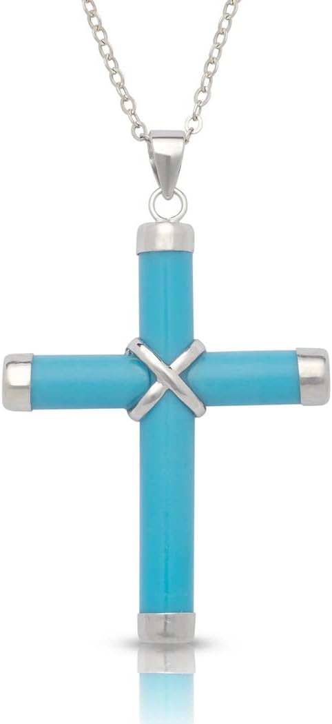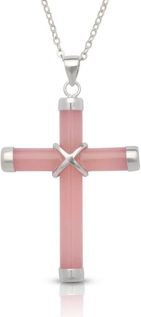 Jade is a highly valued stone in many cultures, and a jade cross can hold different significance depending on the context and culture in which it is used. Some potential meanings or significance of a jade cross include: *Religious significance: In Christianity, a jade cross may symbolize the crucifixion of Jesus and the sacrifice he made for humanity. It can also be a symbol of faith, hope and love. *Healing properties: Jade is believed to have healing properties in many cultures, and wearing a jade cross may be thought to provide spiritual or physical healing. *Cultural significance: Jade is highly valued in Chinese culture, and a jade cross may hold special significance in this context. For example, in ancient China, jade was believed to have the power to ward off evil spirits and bring good luck, and a jade cross could be worn for protection. *Aesthetic appeal: Some people may simply appreciate the beauty of jade and choose to wear a jade cross as a fashion accessory. Metal Stamp: 925 Gemstone: Dyed Jade, Black Onyx, Blue Lapis, Created Turquoise Measurement: 25mm x35mm Chain: 18" Sterling silver cable chain with spring ring closure.