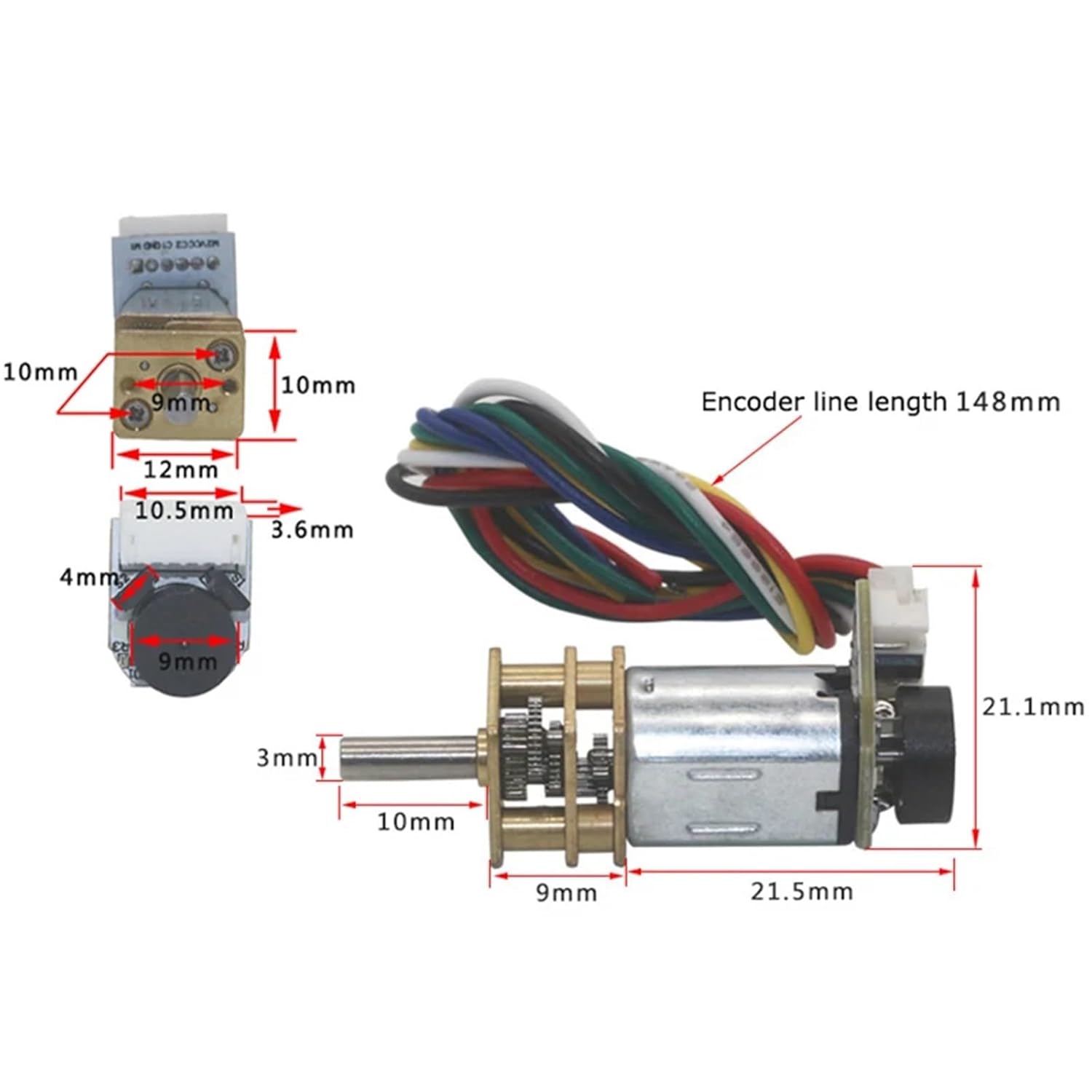 MotorsJGA12-N20 DC Geared Motor Miniature Motor Encoder Motor 3V 12V 24V 1PcsVoltage: 3V 6V 12VModel Number : JGA12-N20BContinuous Current(A) : 30mAConstruction : Permanent MagnetType : Gear MotorCommutation : BrushEfficiency : IE 1Output Voltage : 0.35W