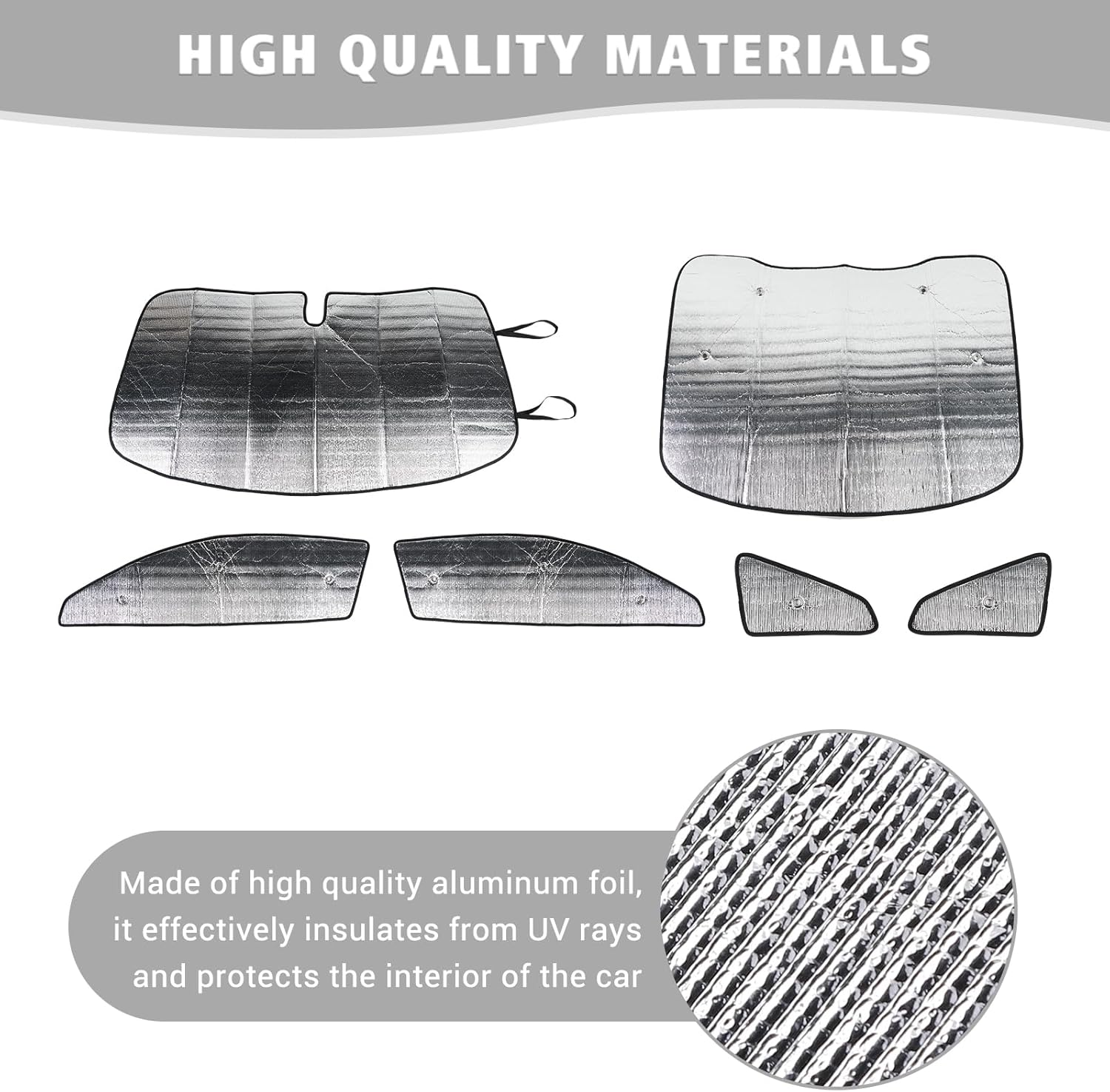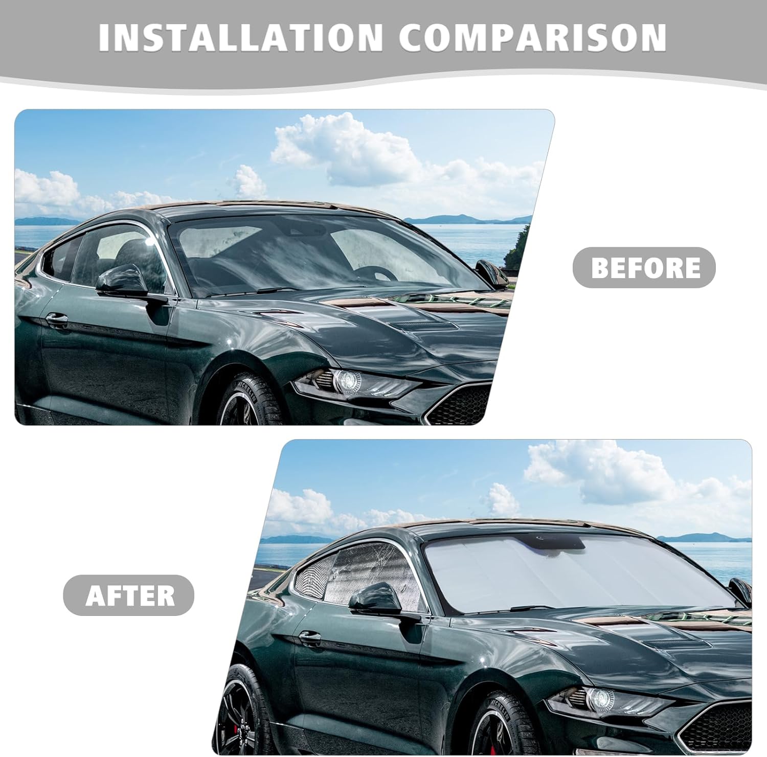 Jimen Compatible with Ford Mustang 2015-2023, 6PCS Front and Rear Windshield Reflector Sunshade Side Window Shade