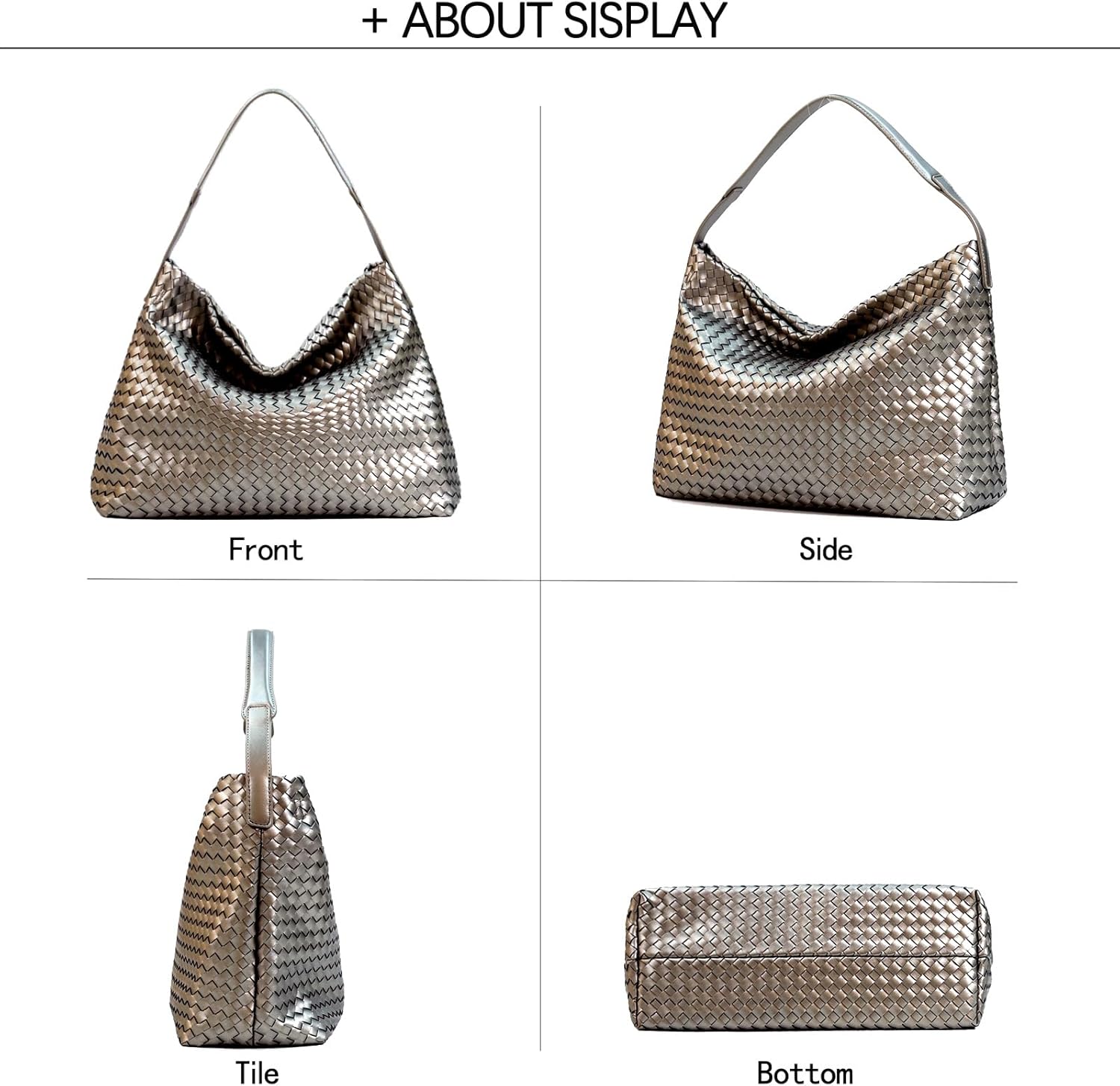 Feature: 1.Material: Made of vegan leather fabric, it is soft and comfortable, durable, 2. Size: the shoulder bag size is 13.77" L x 5.51" W x 11.81" H, Handle drop: 10.23" . Clutch size: 9.44" L x 4.33" W x 7.87" H., which is large capacity, can easily accommodate your mobile phone, keys, wallet, lipstick, cosmetics and other items and small accessories, 3. Structure: portable top handle. Metal snap pockets are easy to store and carry. 4. Design: Solid color, handmade woven pattern, adjustable shoulder straps. Can be used as a shoulder bag, crossbody bag and handbag, easily matching your style. 5. Gift: It is a good choice for shopping, outdoor sports, and travel street photography. Note: Due to the different monitor and light effect, the actual color of the item might be slightly different from the color showed on the pictures. Thank you! Please allow 1-2cm measuring deviation due to manual measureme