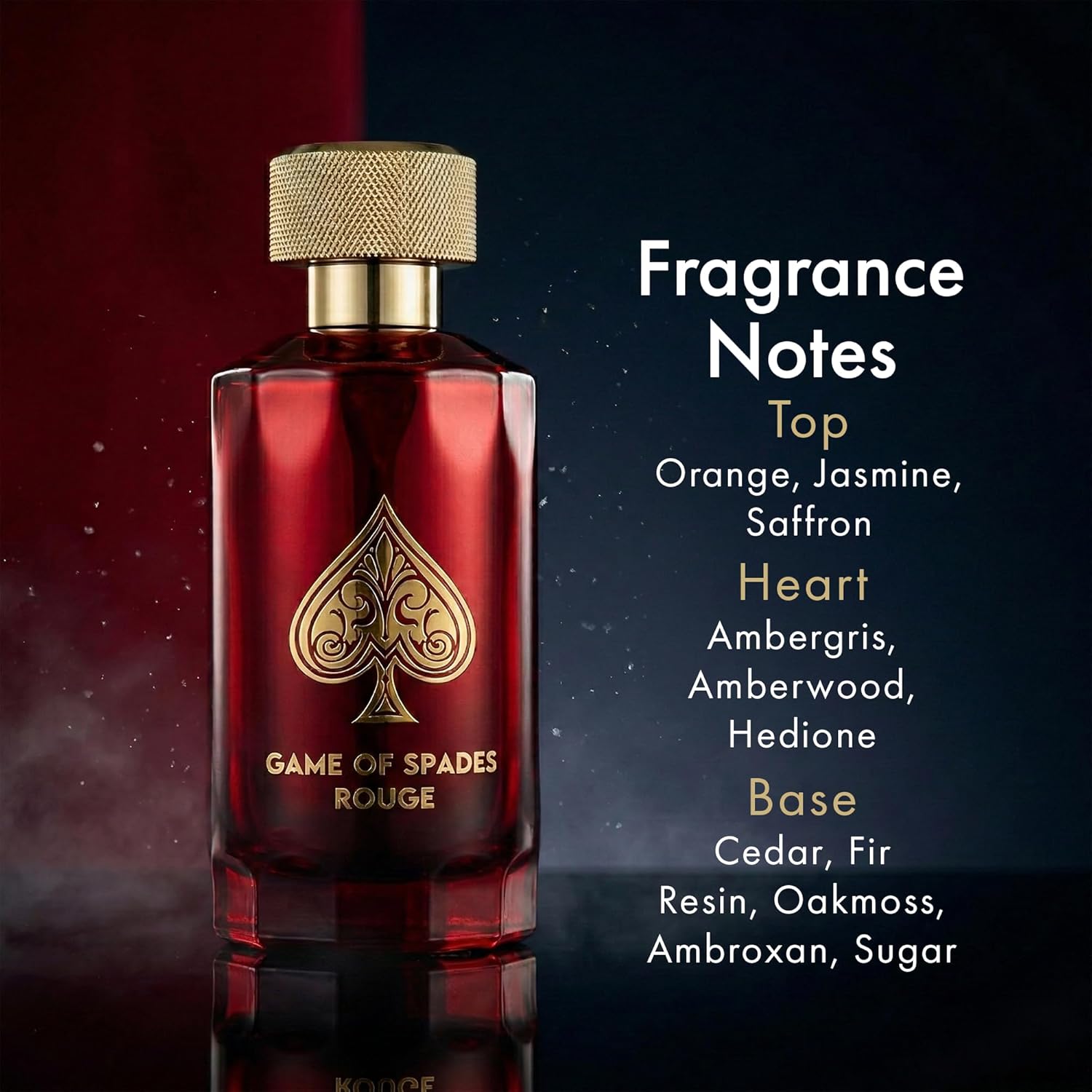 Jo Milano Game of Spades Rouge Parfum Spray | 3.4 oz (100ml) | Oud Wood, Sugar, Warm, Spicy, Orange, Saffron Scent | Long Lasting Fragrance for Men and Women (Unisex)
