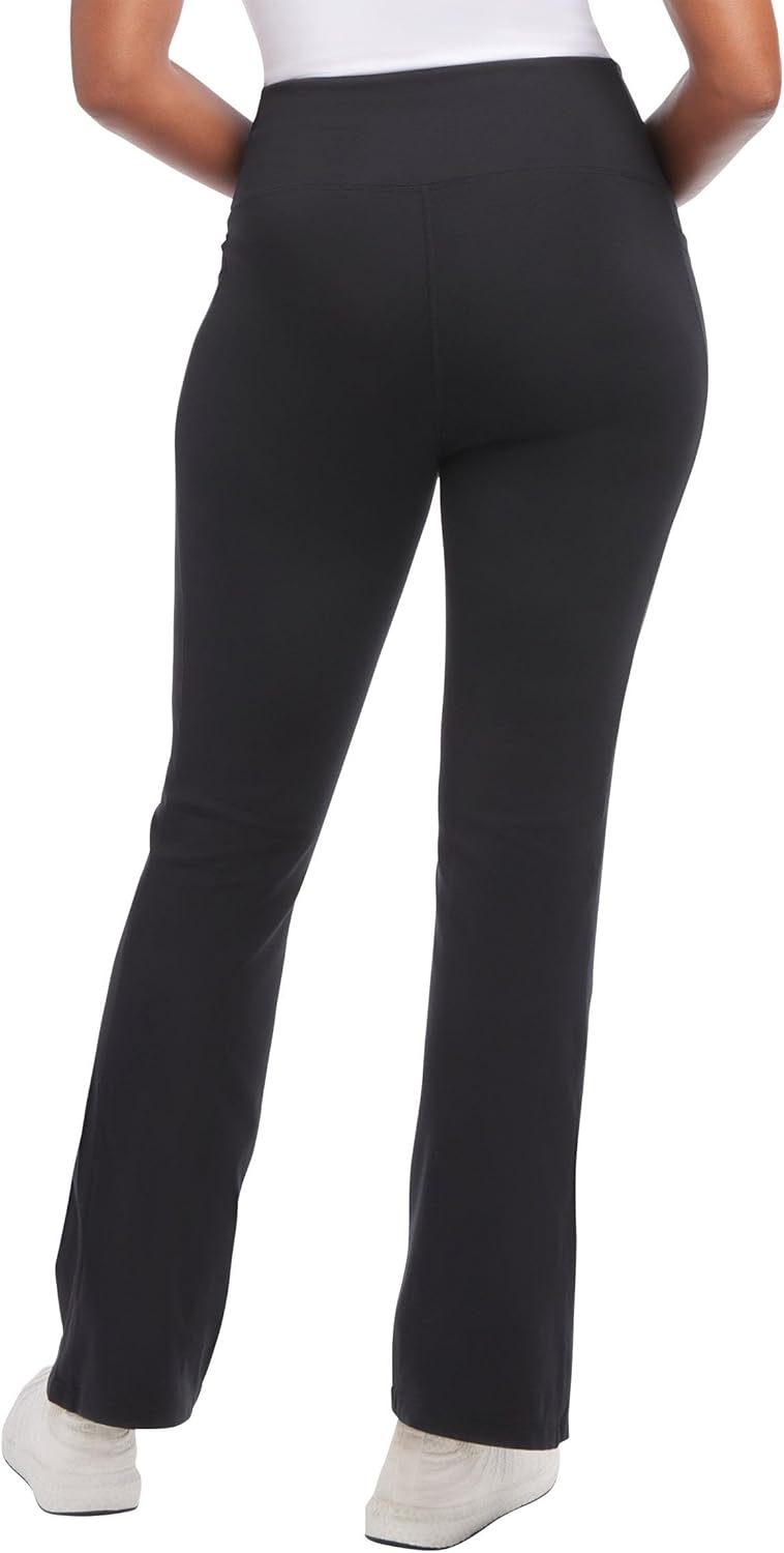 Experience revolutionary comfort and freedom of movement in this Jockey Yoga Pant. Jockeys Flare Yoga Pant is a soft and stretchy go-to, crafted with breathable fabric and a plenty of stretch. This versatile yoga pant is ideal for days when you need a little a break from traditional tapered leggings and want to add a little throwback vibe. Featuring a wide elastic waistband for comfort and support, two side pockets and moisture wicking finishes with 4 way stretch.