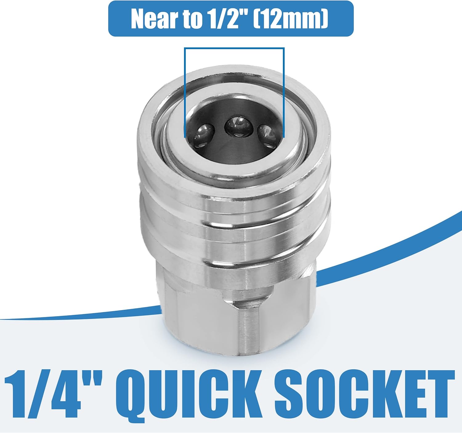 ๐๐จ๐ง๐ -๐๐ข๐ฌ๐ญ๐๐ง๐๐ ๐๐ฉ๐ซ๐๐ฒ: This m5 twist shooter tip can easily reach distances of up to 50 feet, making it perfect for cleaning tasks that require access to remote or elevated areas. Whether washing high rooftops, walls, or distant stains, users can manage these tasks effortlessly, enhancing safety and efficiency in cleaning. ๐๐ข๐๐ ๐๐จ๐ฆ๐ฉ๐๐ญ๐ข๐๐ข๐ฅ๐ข๐ญ๐ฒ: The pressure washer nozzle is equipped with a 1/4" quick-connect plug, making it compatible with most pressure washer accessories for user convenience. It functions efficiently within a pressure range of 1000 to 6000 psi and a flow rate of 3-7 gpm, ensuring effective water flow and cleaning capabilities. EASY TO CONNECT-1/4" pressure washer couplers are easy to connect or disconnect. Pressure washer quick connect saves time for you. DURABLE-1/4" pressure washer fittings are made of high-quality stainless steel. More corrosion resistance than brass. 1/4" pressure washer adapter set serves you for a long time. Package Included: a downstream soft wash nozzle and two 1/4" quick disconnect socket to 1/4" NPT female couplers.