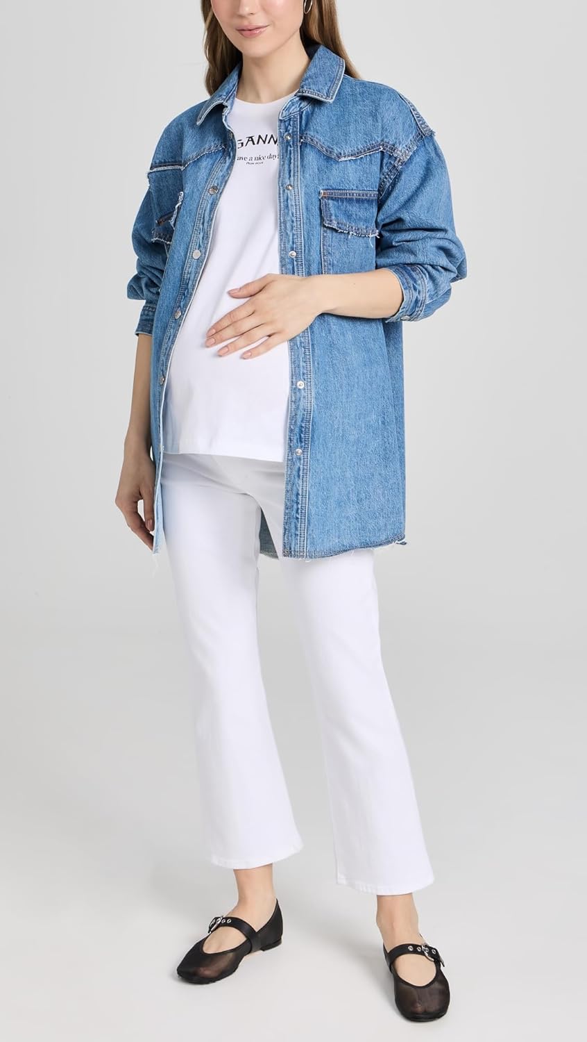 The Icon Ankle in White is a mid-rise skinny jean styled with added drama at the ankles. The subtle flare at the hem lets you express your style and showcase your favorite footwear. It's made from our Flawless denim with sculpting stretch and flexible maternity waistband in crisp white denim.
