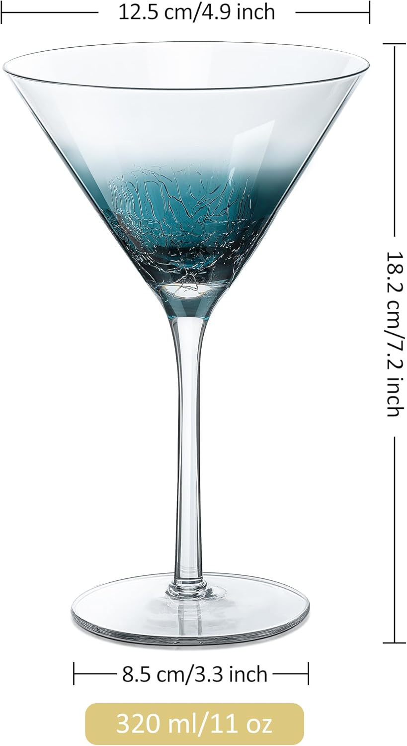 Joeyan Handmade Blue Crackle Martini Glasses,11 oz Crystal Cocktail Glassware,Drinking Glasses for Espresso Martini Cosmopolitan Manhattan Gimlet,Set of 2