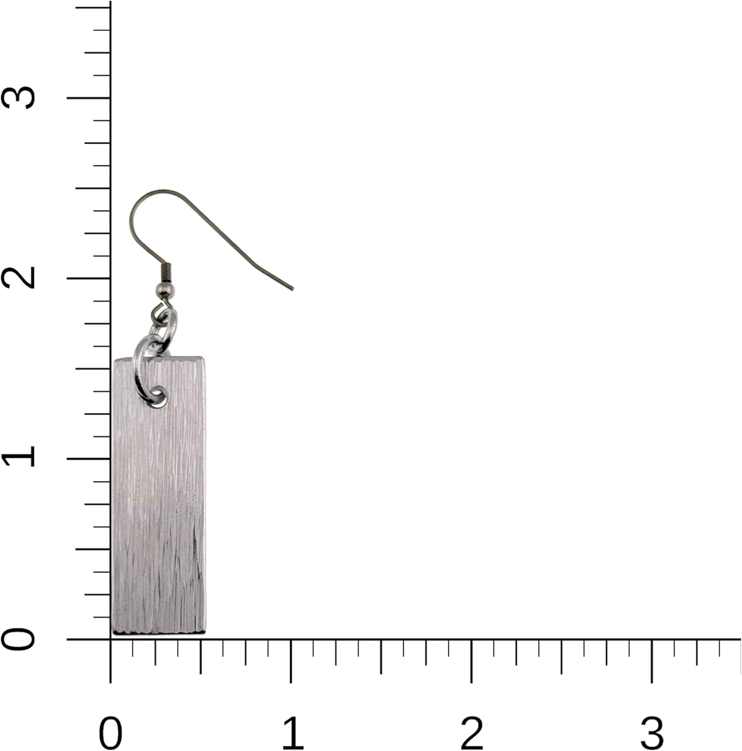 Elevate your style with these sleek and sophisticated aluminum plank earrings. Measuring 2 inches long and 1/2 inch wide, these statement pieces strike the perfect balance - long enough to make an impact while avoiding tangles in your hair. The distinctive bark texture adds visual interest and depth to the permanent silver tone finish, which maintains its shine without ever needing polish. Crafted from non-tarnishing aluminum, these earrings feature hypoallergenic stainless steel French ear wires, making them ideal for sensitive ears. The lightweight design ensures comfortable all-day wear without the typical soreness associated with heavier earrings. Each pair is thoughtfully handcrafted in San Francisco using 100% U.S.-sourced recycled metals, combining artisanal quality with contemporary style. These versatile earrings complement both casual and dressy outfits, making them a perfect choice for any occasion. They also make an especially meaningful 10th wedding anniversary gift, as aluminum is the traditional material for this milestone celebration.