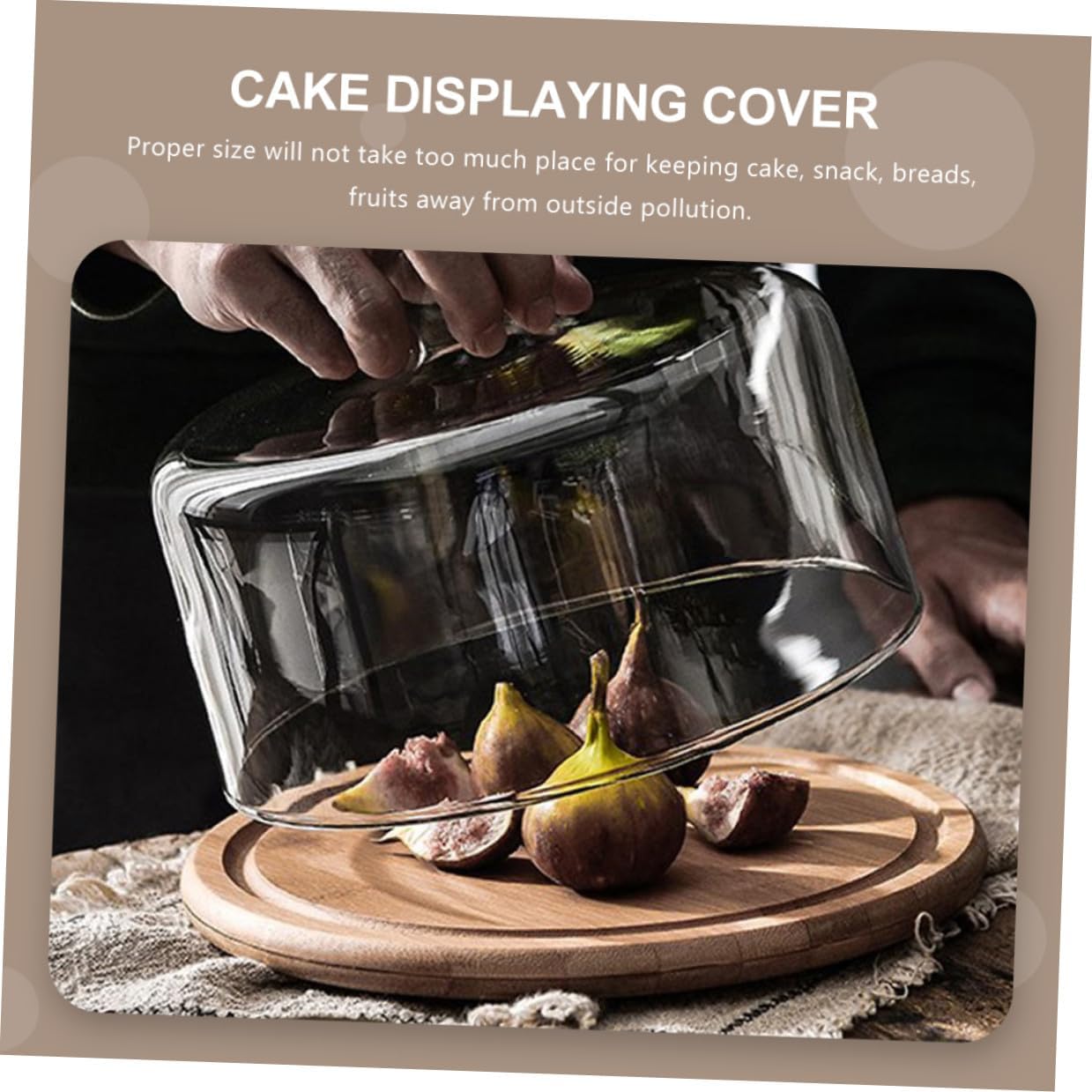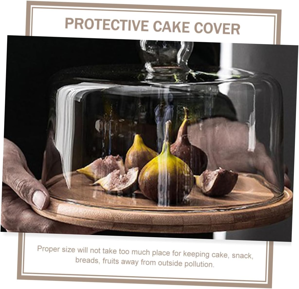 Package Include 1 x glass cake cover 1 x round base Characteristics - Color: As shown. - Material: Wood and glass. -Product Info:Cake cover - Size: About 24.00X24.00X12.00cm/9.43X9.43X4.72in. - Compatible with multiple occasion, such as home, hotel, restaurant, etc cake cover. - Simple shape and look design is very stylish and generous, and sturdy Cake Glass Cover. - Made of glass material, safe and convenient for a long time use. - Clear design, can see the appearance of your delicious food Confectionery Dessert Cover. - The handle is small, round and smooth shape and convenient to take dome food cover.Goods Descriptionglass dessert dome Are you looking for a professional, yet food cover? Are you in search of a sturdy food cover that offers you a comfortable use experience? If your answer is yes, please come and take at this product!