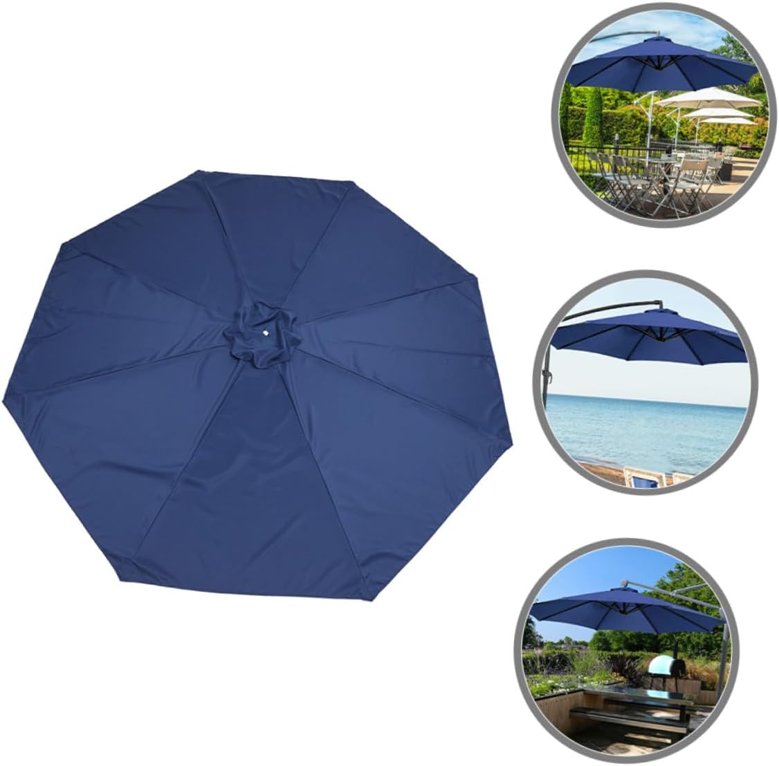 Package Include 1 x outdoor umbrella canopy Characteristics -Protective: With the use of sun-resistant and rain-resistant materials, the umbrella canopy offers protection against the effects of the sun and rain on the skin. - Versatile: The outdoor umbrella canopy replacement is suitable for use in different settings, such as patios and beaches garden parasol cover waterproof. - Selected Material: Made from selected materials, the replacement canopy ensures use. -Product Info:Parasol cloth -Note:suitable for 8-rib umbrella with 52-54 inch(132-135cm) rib length. shade umbrella - Ventilation: Featuring a ventilation system, it is good for use with aluminum, or steel frames replacement patio umbrella canopy. -Material:Woven polyester -Color:Dark Blue - Practical Replacement: Effortlessly replacing old and worn-out umbrella canopies, this new and improved design is sure to impress umbrella replaceable canopy. -Size:270.00X270.00X0.10cm/106.11X106.11X0.04inGoods Descriptionparasol umbrella cover Looking for a replacement canopy for your outdoor patio umbrella? Look no further! Our practical patio umbrella replacement canopy is the solution for restoring your old, worn-out umbrella and giving it new life.canopy replacement Whether you're looking to replace a ripped or faded canopy, or simply want a fresh new look for your outdoor space, our replacement canopies are the choice