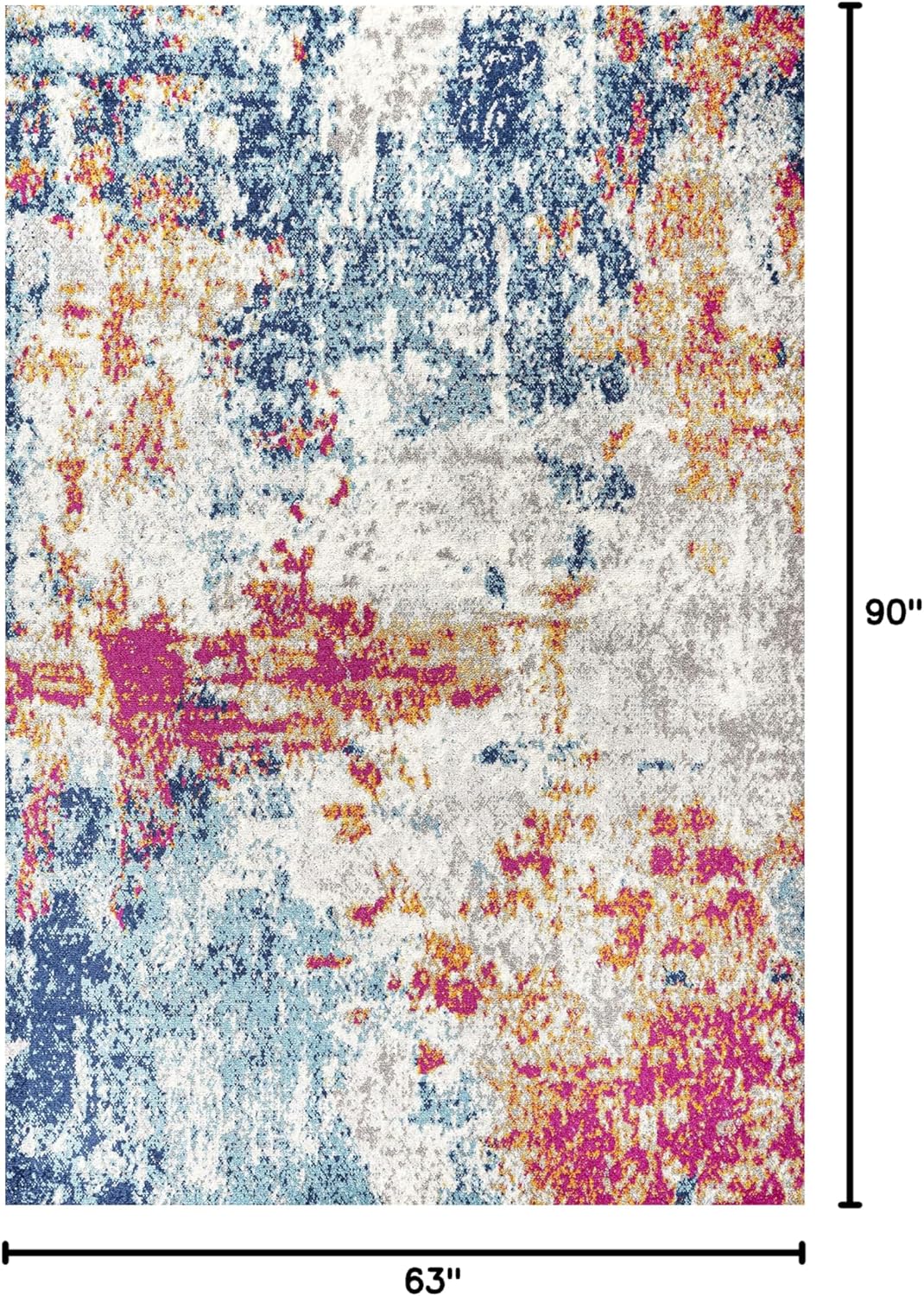 Inspired by the colors of an ocean sunset, this bold rug is modern art for your floor. Blues, reds and accents of gold splash and mingle in a random abstract design. This unique rug's overall pattern makes it perfect for homes with kids and pets. It's the perfect centerpiece for a mid-century modern, contemporary, or beach house. Actual Dimension: 5 ft. 3 in. x 7 ft. 6 in. Color: Blue/Multi Thickness measures: 0.35 in. Vacuum regularly and spot clean as needed; avoid direct and continuous exposure to sunlight; use brushless vacuum; remove spills immediately; if liquid, blot with clean, undyed cloth by pressing firmly around the spill to absorb as much as possible; for hard to remove stains, professional rug cleaning is recommended; store in a dry, well ventilated area and rotate for consistent wear . The JONATHAN Y Rug Collection creates modern area rugs inspired by ancient rug traditions from around the globe. We believe that affordable rugs should be fabulous…. and the more choice, the better! Our trend-worthy designs are durable and easy-care, so they’re ideal for busy lifestyles. Whether you love Boho-chic colors or Minimalist neutrals, we’ll style your floors at a price you’ll love.
