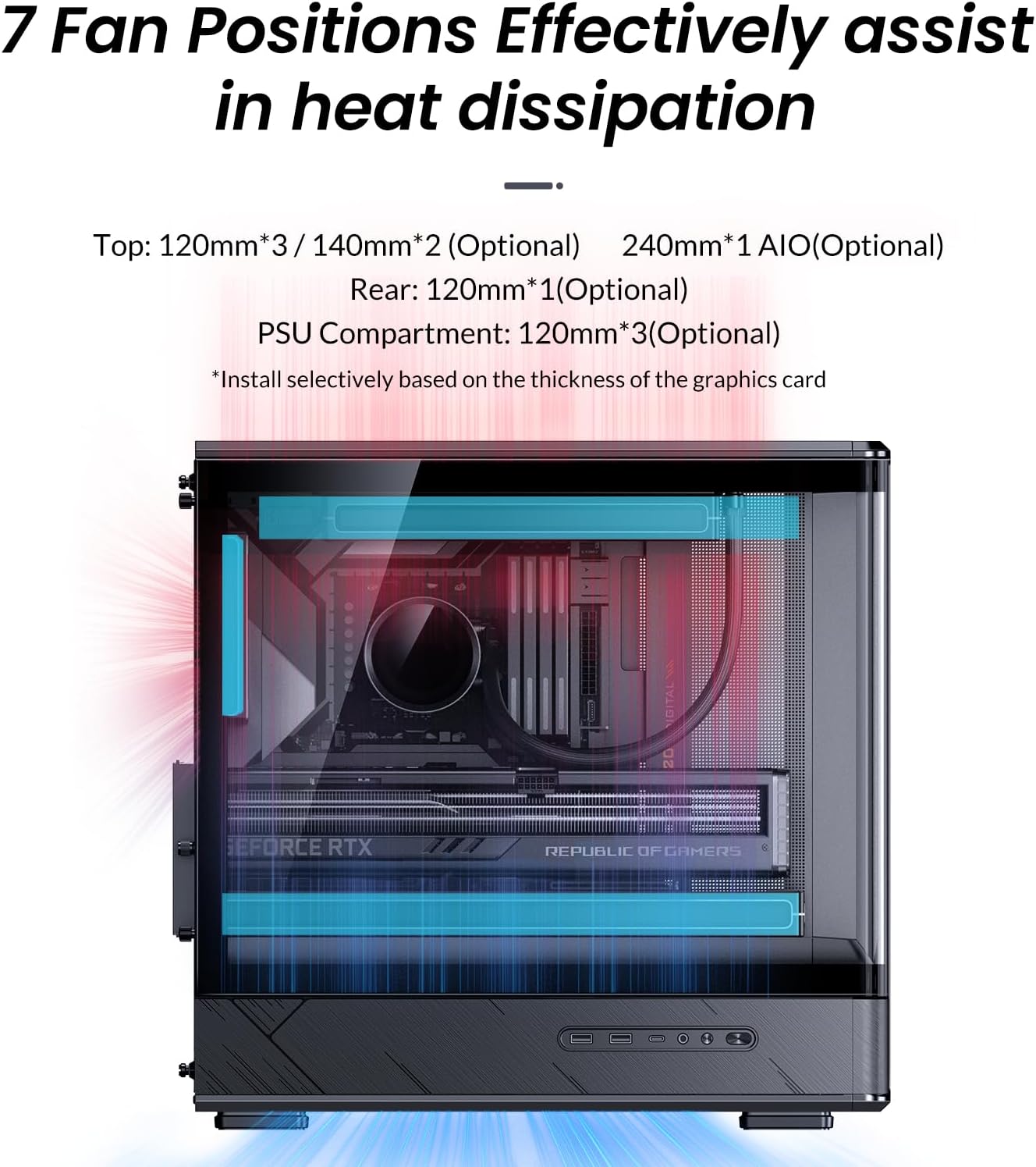 | Compatible Devices | Micro-ATX/ITX motherboards, GPUs up to 410mm, CPU coolers up to 171mm, 240mm AIO cooling systems |
