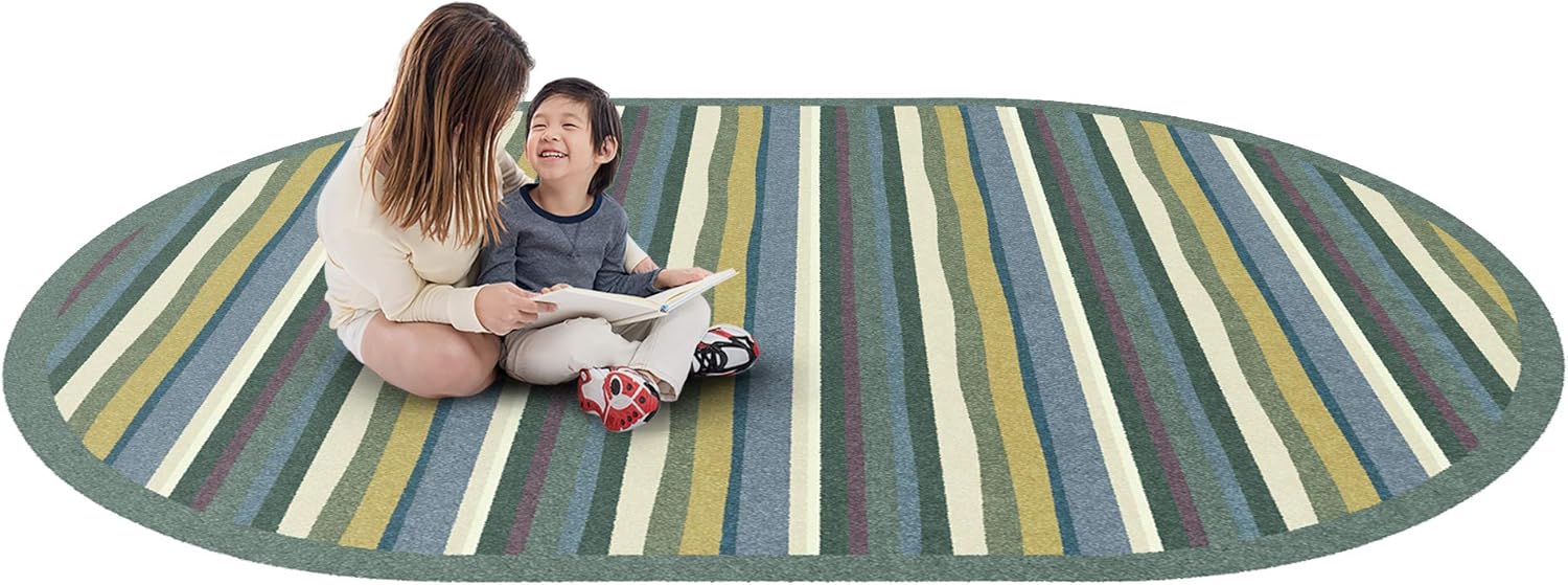 Yipes stripes will be a delightful addition to your infant and early childhood space. Softly colored stripes create an unassuming yet attractive rug that is perfect for all ages.