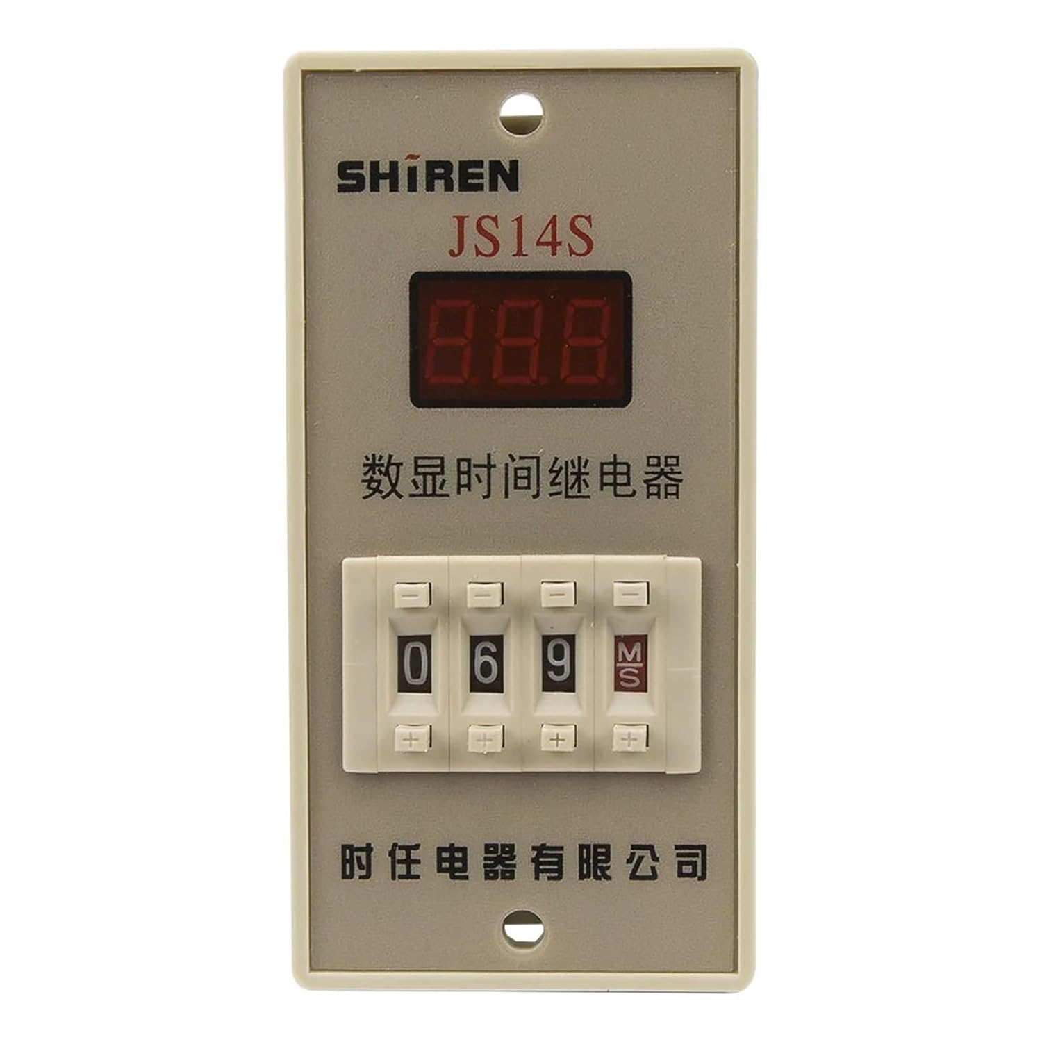 relayRelayJS14S digital time relayContact form and delay timeModel numberContact formDelay timeRelated productJS14S-2On-delay DPDT9.9s/99s/99m/99h/0.1s-99hOrderJS14S-3On-delay DPDT9.99s/99.9s/999s/999m/999h/1s-9m59s/1m-9h59m/0.01s-999hVisiting...JS14S-4On-delay DPDT99.99s/999.9s/9999s/9999m/9999h/1s-99m59s/1m-99h59mOrderJS14S-3 time relay model number legendJS14S-3Parent Model NumberSupply voltage-DA: 100-240VAC/DC-380VAC: 380VAC-24V: 24VAC/DC-12V: 12VAC/DCDelay time-9.99S: 9.99s-99.9S: 99.9s-999S: 999s-999M: 999min-MS: 9min59s-HM: 9h59min-MT: 0.01s-999hGeneralModel numberJS14SSupply voltage100V-240VAC/DC; 36 380 Vac 50/60 Hz; 12 24 Vdc;Tolerance-15% ... 10% at AC and -10% ... 10% at DC of rated supply voltagePower consumption3W maxSetting methodDial switchIndication method8-segment digital displayExternal dimensions126x104x52 mmPerforate dimensions 77 1/0x46 1/0 mmContact rating3A@250Vac 5A@24VdcRepeat accuracy±0.3% ±0.05 secSetting error±0.5% ±0.05 secTermination11 pinsMountingPanelMatched socketPF113AMechanical life1x106Electrical life1x105Operating temperature-5 to 45 °C (23 to 113 °F)Operating humidity95% RH max non-condensingAlias nameJS14S digital timerJS14S-3 time relay related productsNoModel NumberSupply VoltageDelay TimeRelated Product1 JS14S-3-DA-9.99S(-99.9S -999S -999M -MS -HM -MT)100-240VAC/DC9.99s; 99.9s; 999s; 999min; 9min59s; 9h59min; 0.01s-999hOrder2 JS14S-3-380VAC-9.99S(-99.9S -999S -999M -MS -HM -MT)380VAC9.99s; 99.9s; 999s; 999min; 9min59s; 9h59min; 0.01s-999hOrder3 JS14S-3-24V-9.99S(-99.9S -999S -9