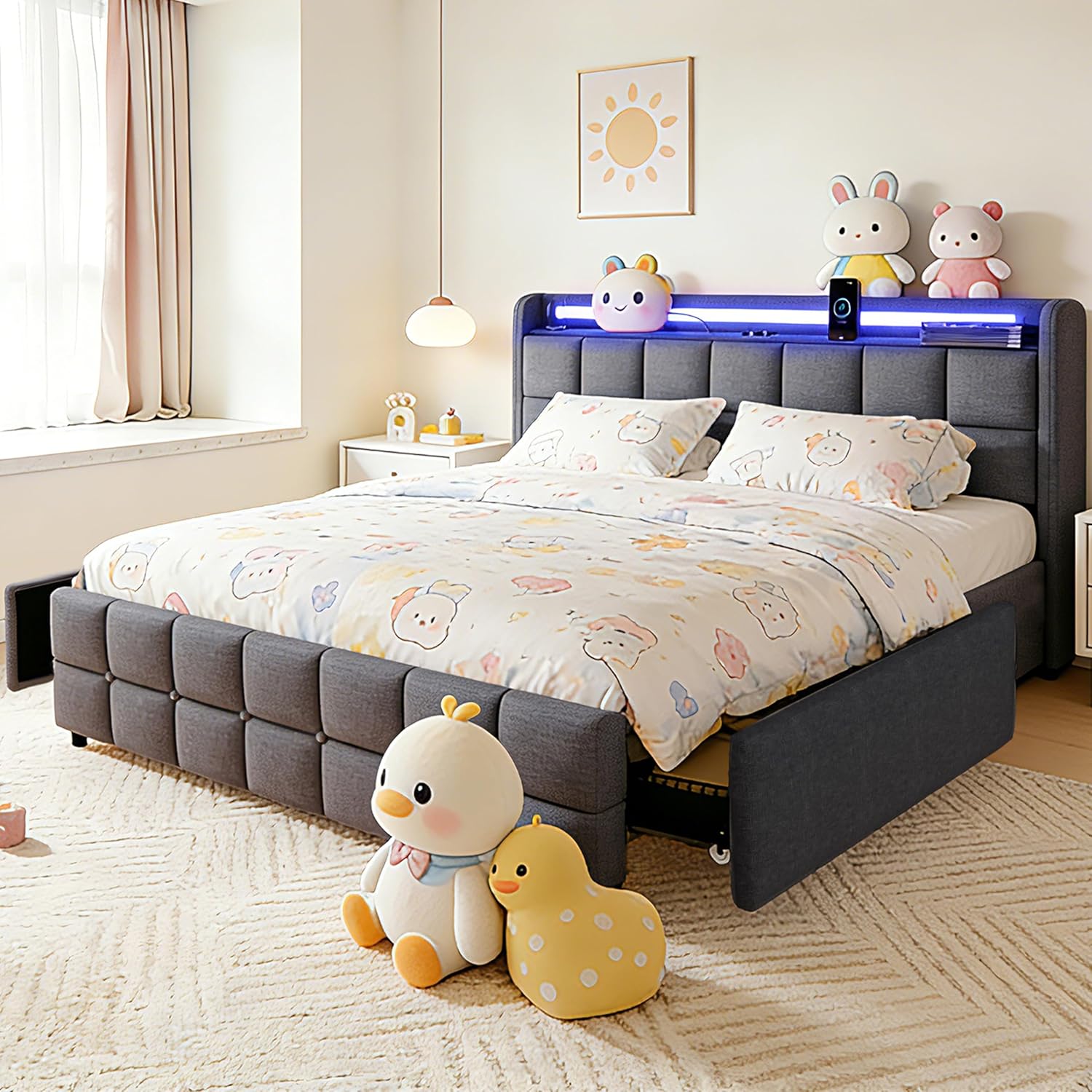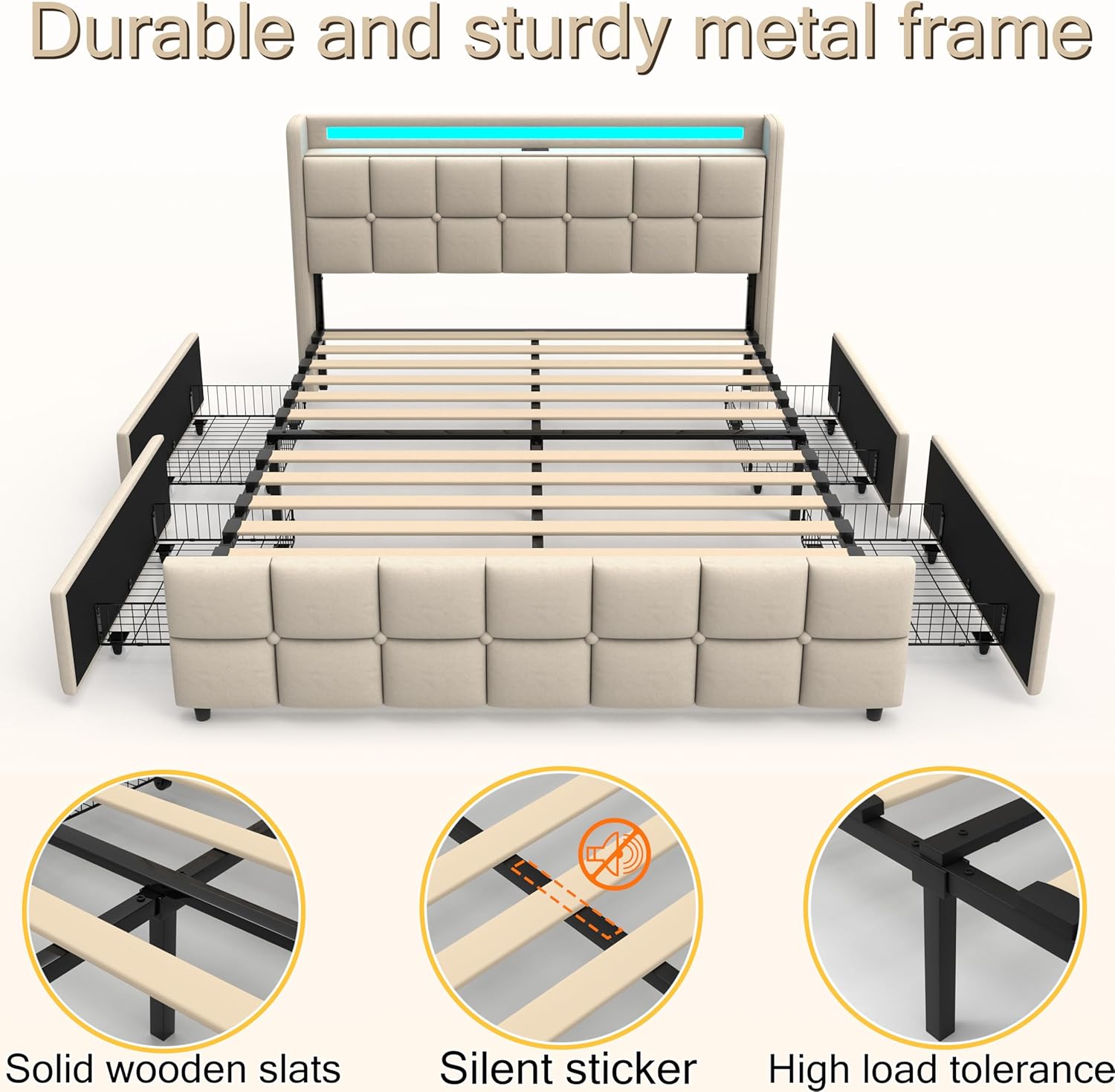 | Additional Features | Charging Station, LED Lighting, No Box Spring Needed, Storage Drawer, USB Port |