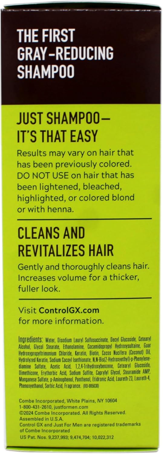 Just for Men Control GX Grey Reducing Shampoo is the first and only shampoo that gradually reduces grey hair with each wash. Designed for daily use, this innovative formula gently cleans and revitalizes hair while restoring natural-looking color over time. It provides subtle, consistent results—so no one will notice a drastic change, just a refreshed, younger appearance. Control GX also strengthens and conditions hair, leaving it healthy, clean, and easy to manage.
