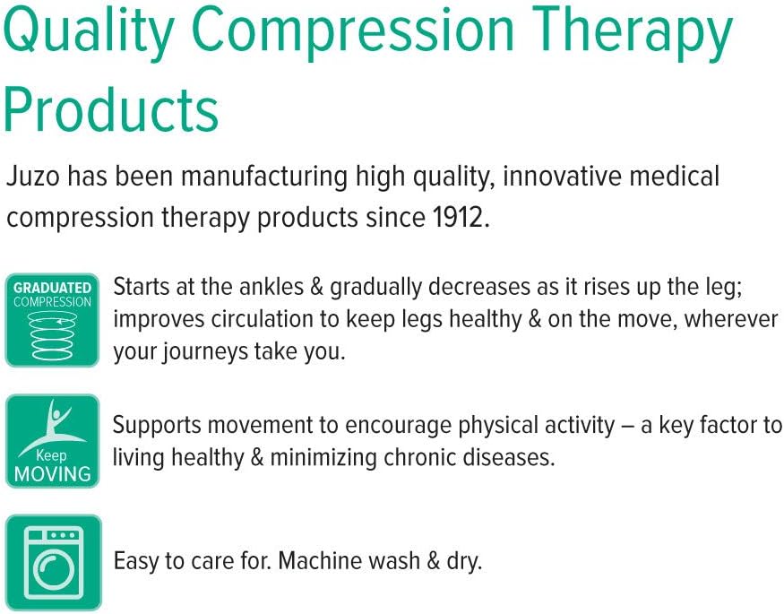 One of the most popular socks from Juzo for men and women, and it's a great value. This ribbed sock can be worn with dress or casual clothes and is available in regular and short lengths with a closed toe. Therapeutic graduated compression improves circulation in the legs and brings relief to a wide range of medical conditions. Easy to care for, can be machine washed and dried. This stocking provides 20-30mmHg of gradient compression. This level helps improve blood flow, prevent edema (swelling), and reduce the discomfort caused by moderate to severe varicose veins. It helps in recovery from sclerotherapy and other post-surgical procedures, and it helps prevent the recurrence of venous ulcerations. Woven from 56% nylon and 44% spandex in the USA.Perfect Use for: Varicose & Spider veins, Varices in Pregnancy, Pre & Post Vein procedure, Mild Edema /Swelling, Poster Thrombotic Syndrome - (Experience pain or swelling after DVT), and Chronic Venous Insufficiency (CVI)- (Poor Circulation).