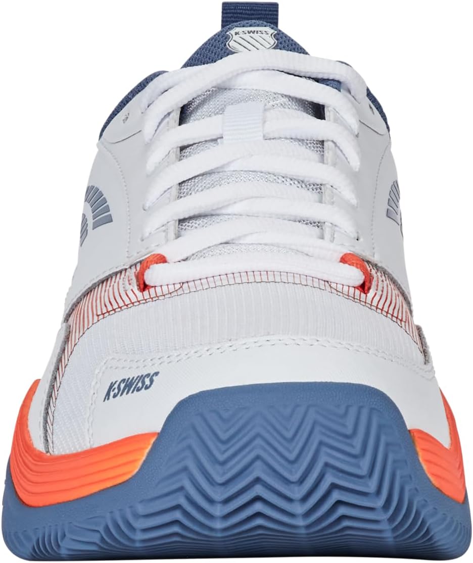 The SpeedEx - an ideal tennis shoe designed for beginners who want to improve their performance. It prioritizes both comfort and stability. Featuring a compression-molded K-EVEA midsole, it provides a soft and supportive feel throughout the game. The non-marking Aosta 7.0 rubber outsole with modified herringbone pattern provides an excellent balance between gliding and grip on sand courts.