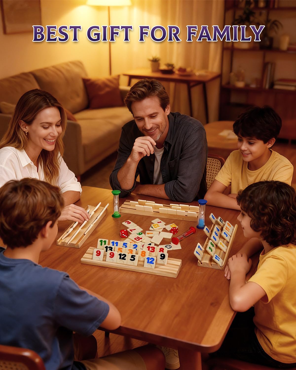 | Included Components | 106 melamine rummy tiles + 6 wooden racks + 6 Hourglass + a portable zippered case + an instruction |