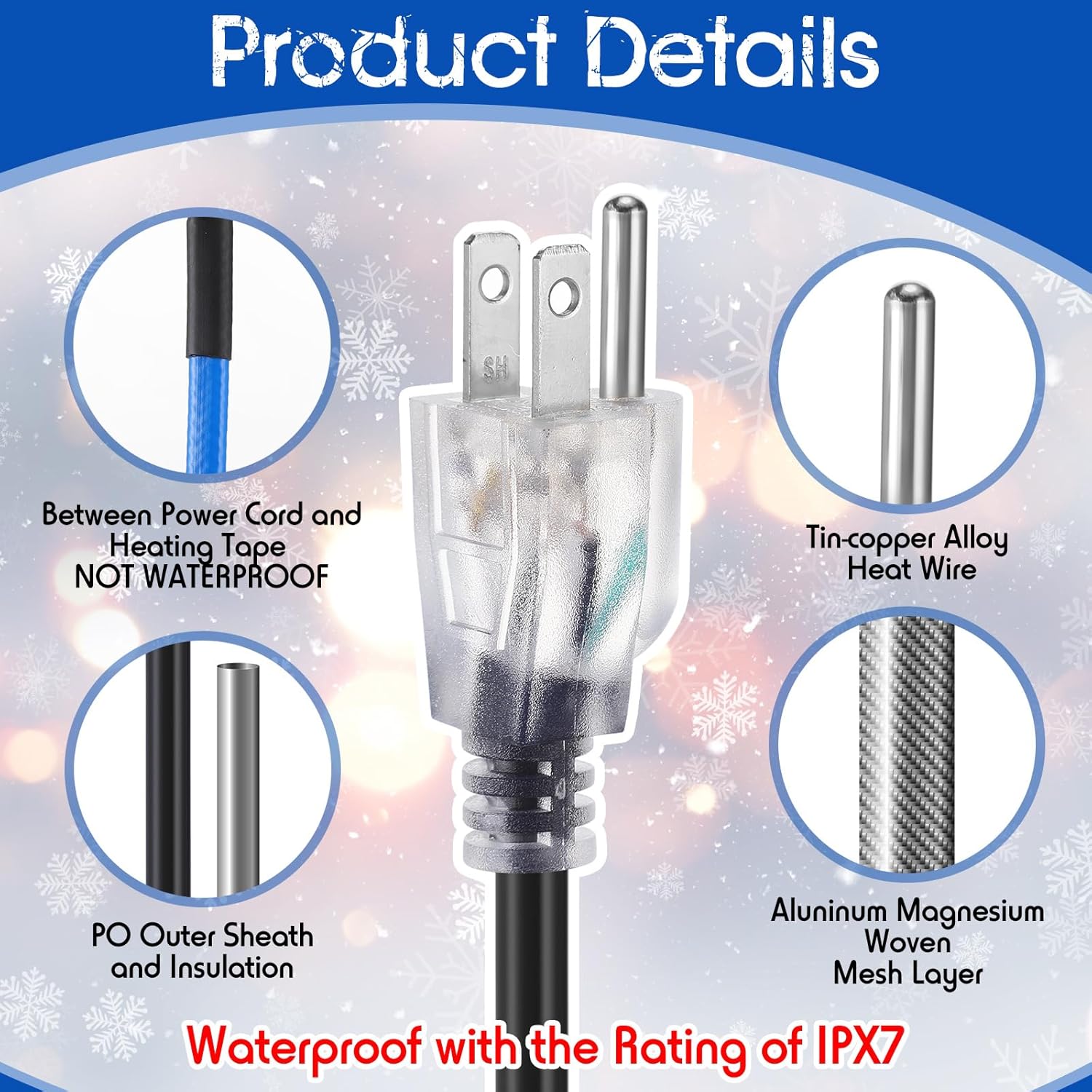 150 Feet Pipe Heat Cable Heat Trace Cable Kit 8W/Ft 120V Roof Deicing Cable with Acetate Cloth Tape Aluminum Hooks and Clips for Winter Metal Plastic Water Pipes Ice Melting Freeze Protection Wide range of use: These deicing cables are suitable for exposed as well as RV plastic and metal water pipes in homes. You can also use them with water pipe insulation cotton for anti freezing use in basements, intake pipes, drains, gutters/ downspouts outdoor hydrants, pipe valves, faucets and more. Notes for use: You can install heat trace cable for roofs in narrow, awkward spaces, but please do not use it in hidden spaces. Do not cross wrap the cables and the distance between them should not be less than 1.96 in/ 5 cm. Specifications: Pipe heat cable: Material: tin copper alloy, PO Color: blue Cable length: 150 ft Package includes: 1 x Pipe heat cable 50 x Aluminum hooks and clips 2 x Acetate cloth tapes Warm notes: Please allow slight errors in size due to manual measurement. Due to different angles of light and shadow effects, please allow a little color difference with the pattern.