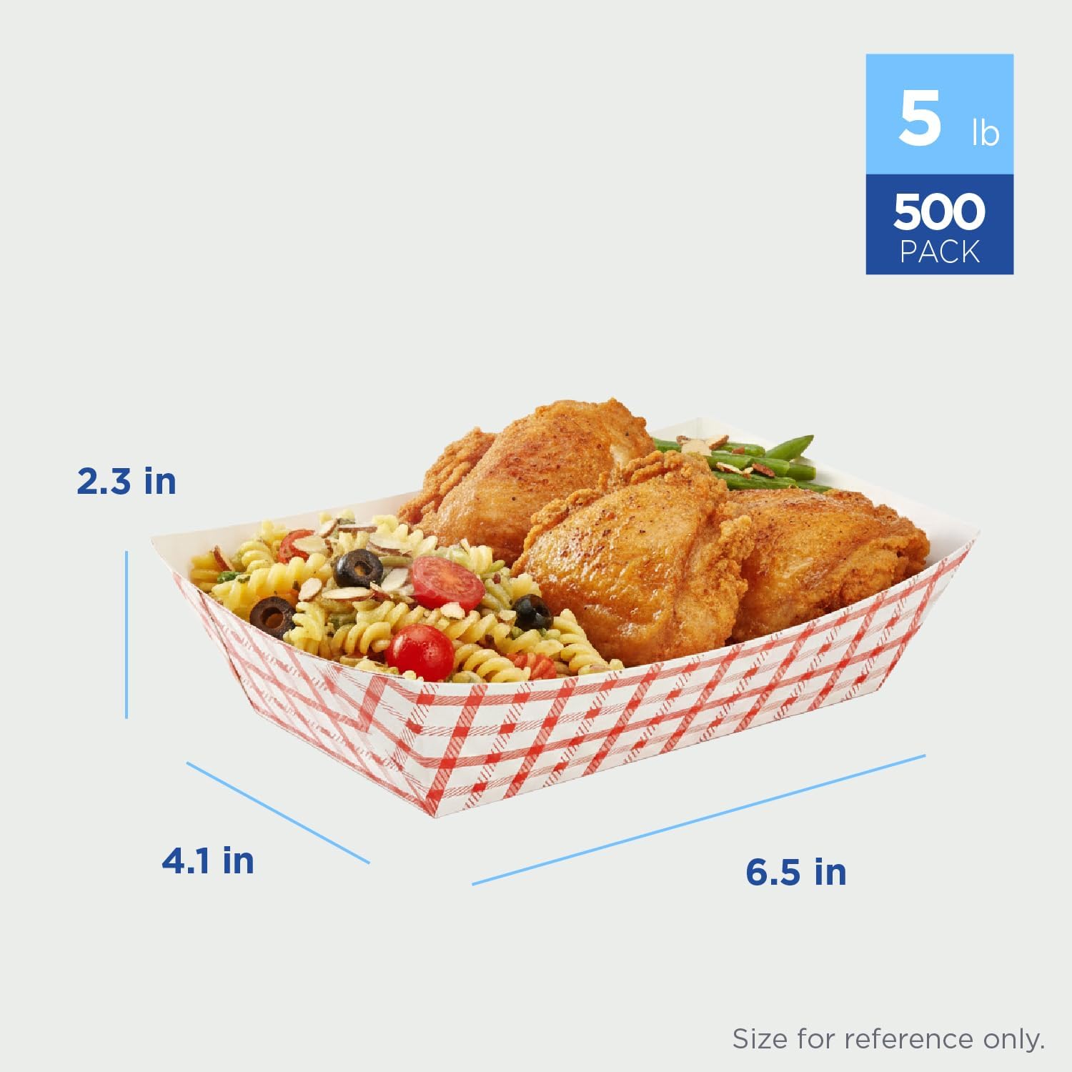 With an iconic checkered red and white pattern, the paper food trays come in a variety of sizes that are perfect for your favorite snacks, side dishes, or finger foods. The sturdy construction is coated with a food safe gloss that is leak resistant and acts as a grease barrier. The open top allows for sauces, condiments, and dips to be easily added to any food item. The trays come in 6 convenient sizes and can fit any of your serving or takeout needs from french fries, chicken tenders, and tacos to fresh fruits, pasta, and veggies. UPC Code:814756021987 Units Sold By:Case 500 pcs