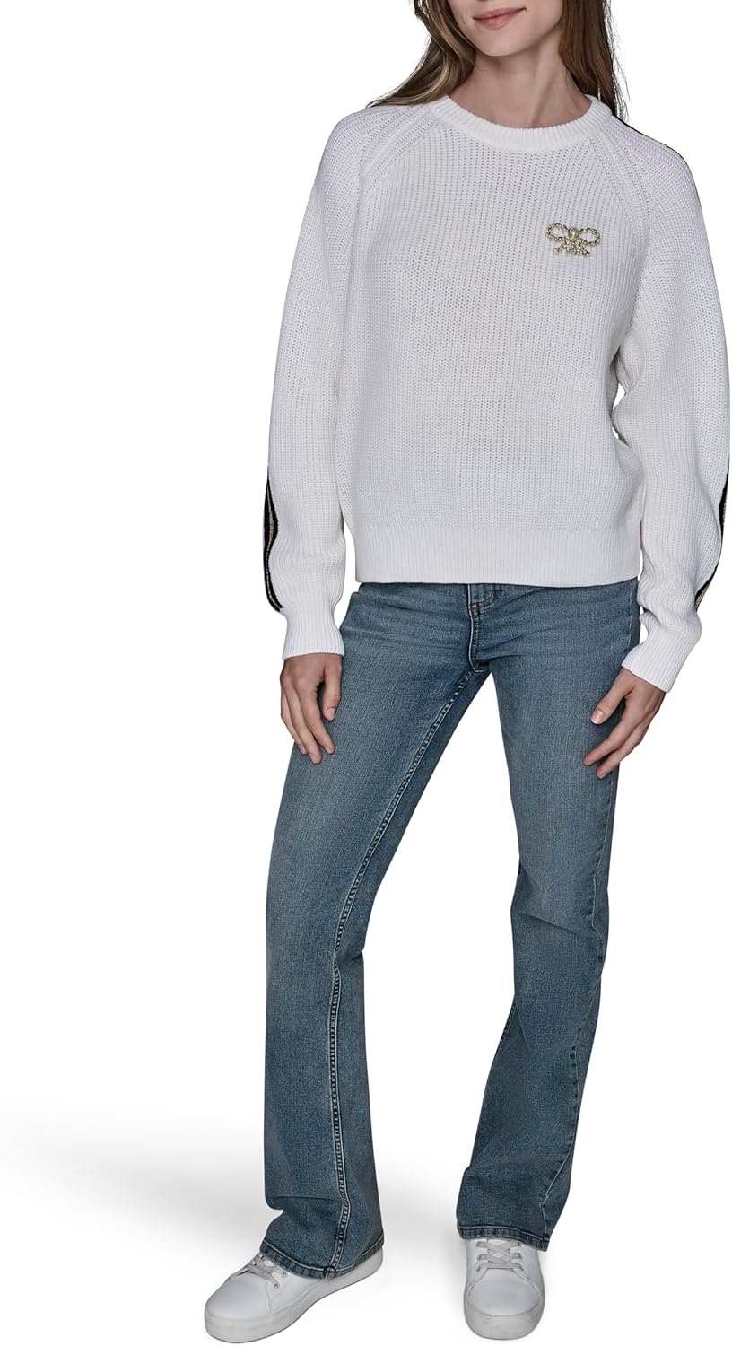 This Karl Lagerfeld Paris Women's Sweater is a Long Sleeve Crew Neck Bow Pin Sweater