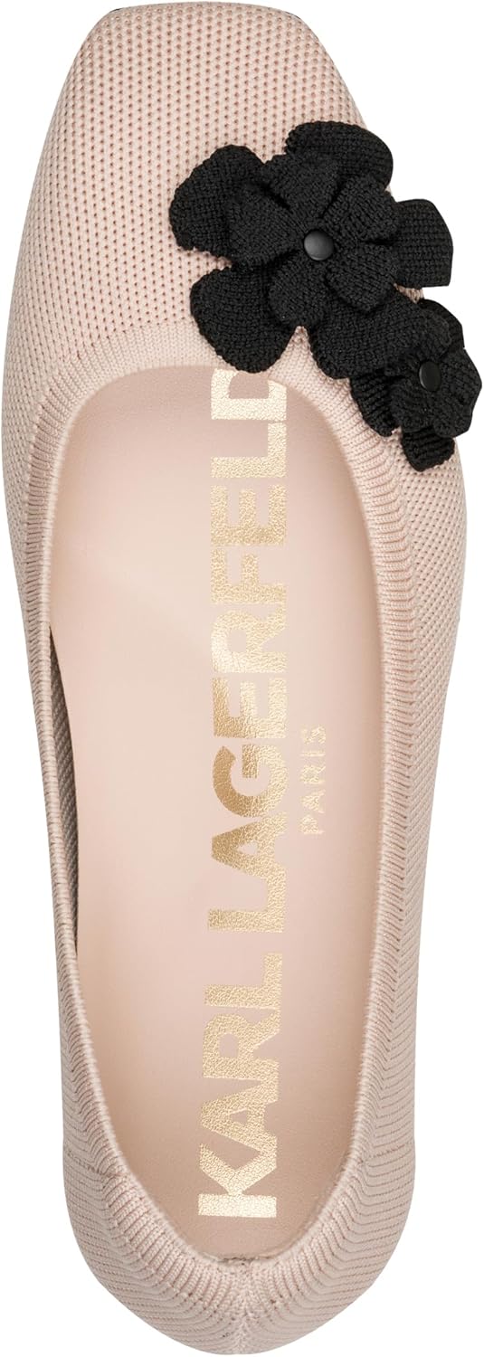 Karl Lagerfeld Paris Women's Zundro Ballet Flat with Flower Details, Bright White, 5