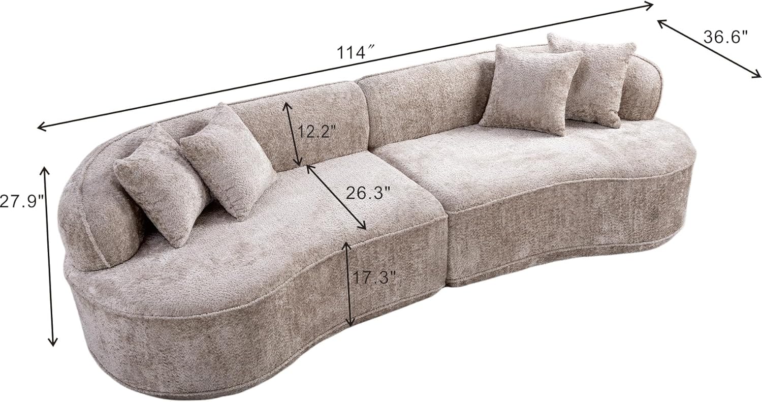 | Item Type Name | KEIKI 114" Boucle Curved Modular Sectional Sofa with 4 Pillows, Upholstered Oversized 4-Seater Boneless Couch with High Resilience Cushion, No Assembly Required, for Apartment, Living Room, Camel |