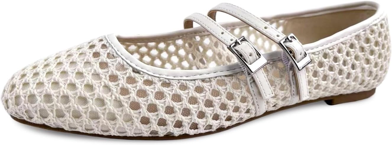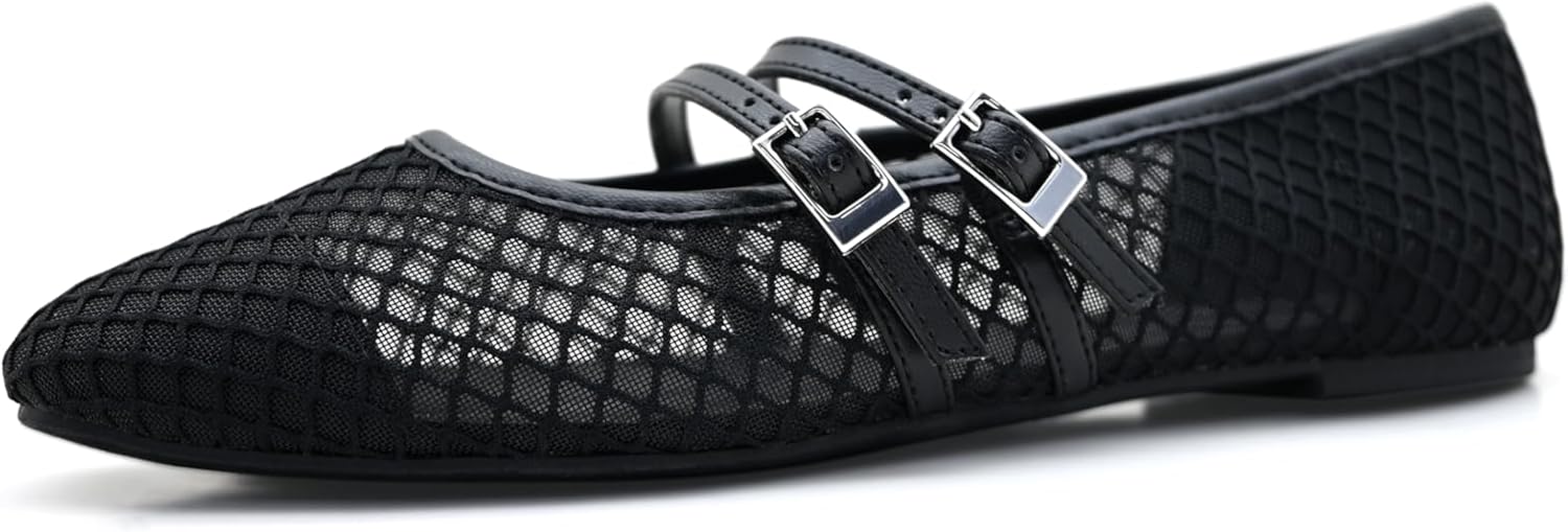 Double straps secure a demure mary-jane flat constructed with a lightly cushioned footbed for easy-wear comfort.
