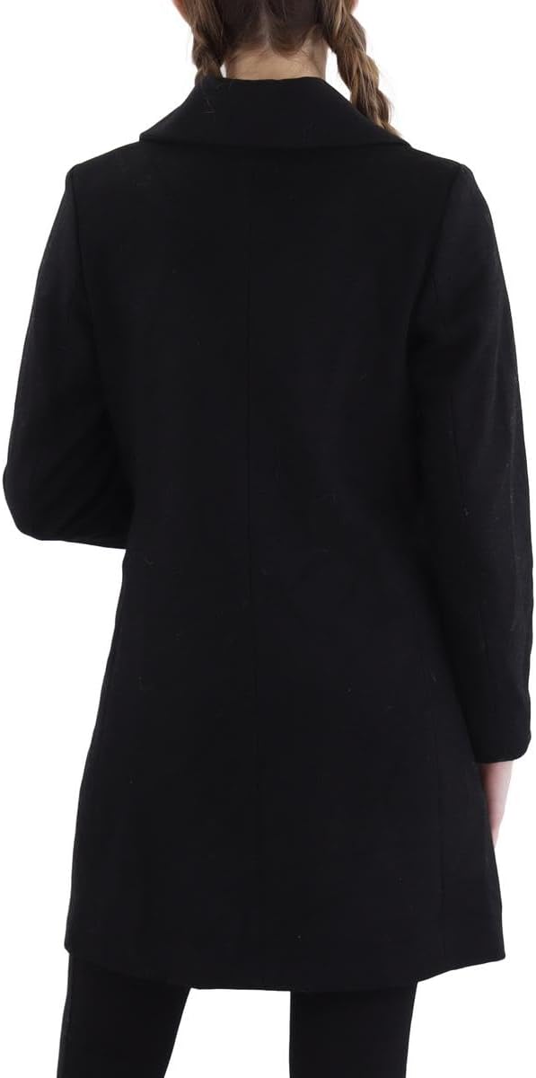 This KENNETH COLE womens melton wool is a asymmetrical classic coat with faux leather trimming