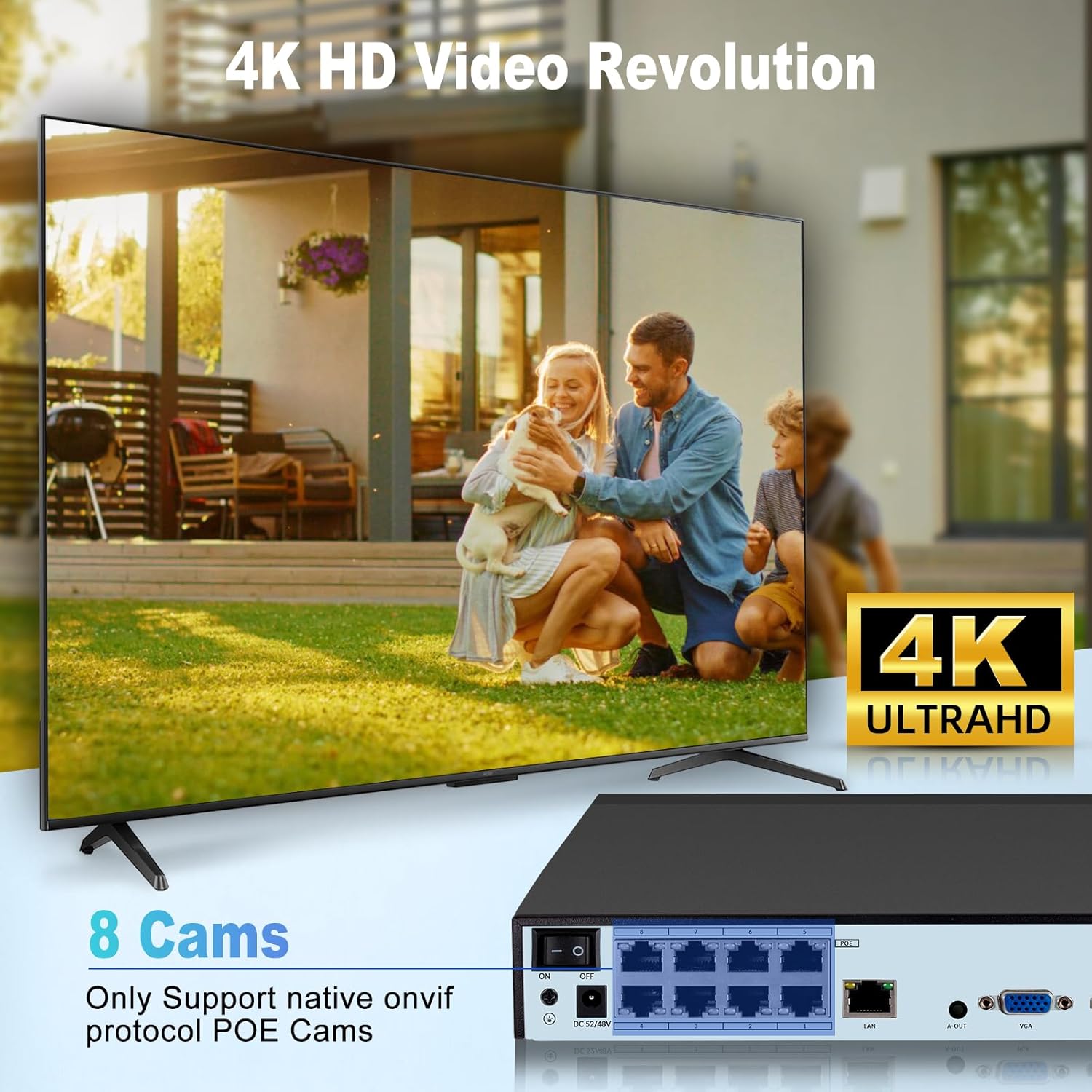 | BuiltIn Media | 1*1TB Hard Drive, 1*8CH POE Network Video Recorder, 4*4MP POE Cameras |