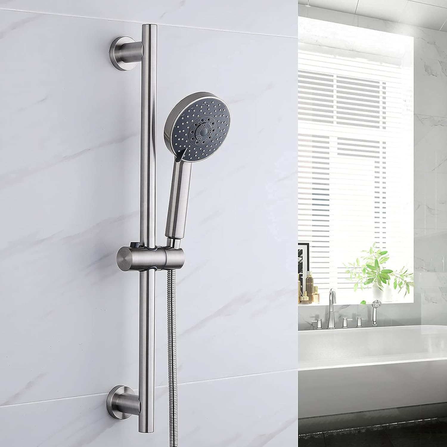 KES 5-Function Hand Shower with Wall Mount Slide Bar Set & Bathroom Sink Drain without Overflow Combo.