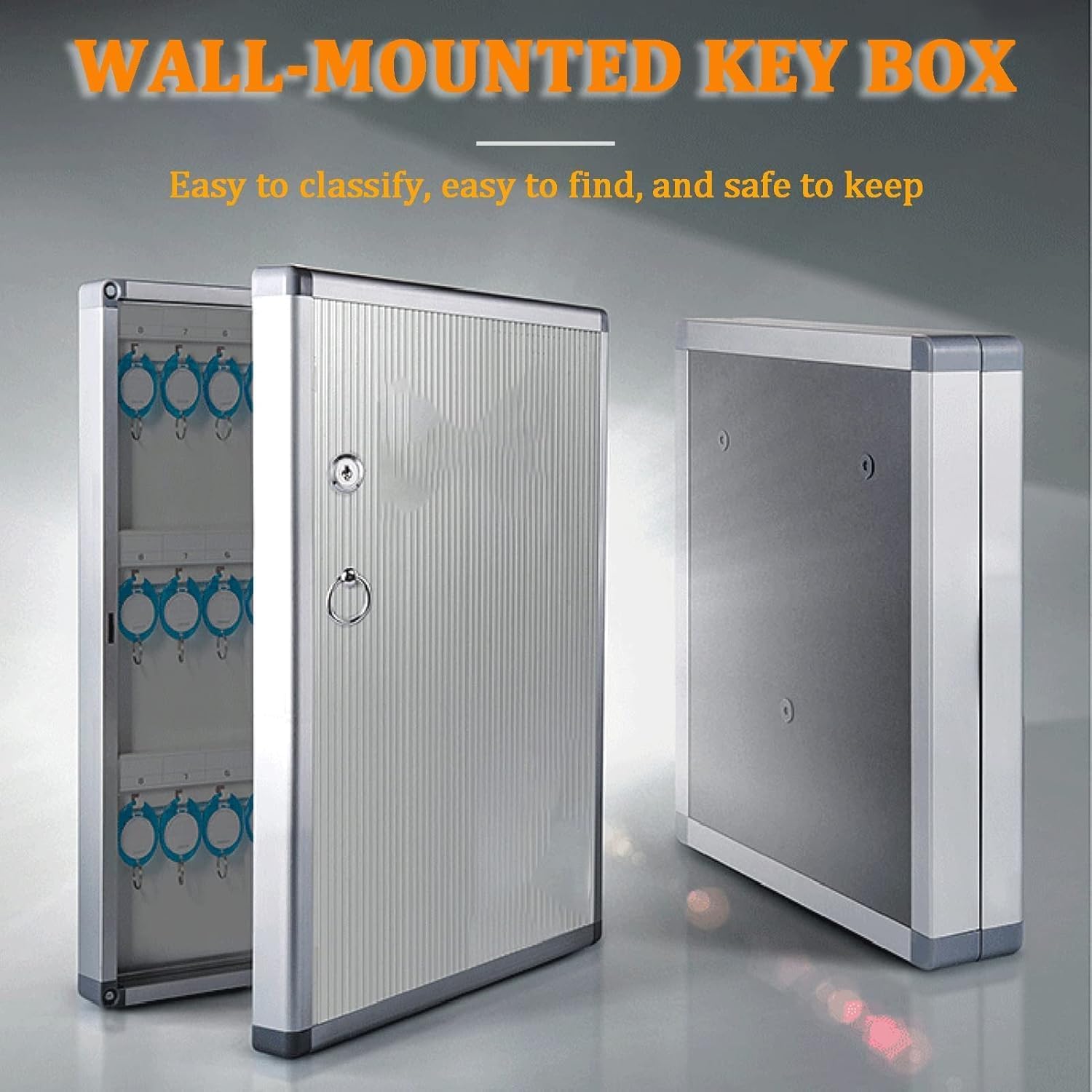 Aluminum Alloy Key Box:Key Cabinet Organizer, Key Lock Box, Wall Mount,Portable,Locker Box,Key Storage Lock Box,Large Storage Cabinet Boxes ️ Product specifications -Product name: Key box -Material: Metal -Color: Silver -External dimensions: 12 bit 21×5.5×23cm/8.2×2.1×9" 24 bit 22×63×32.5cm/8.6×24.8×12.7" 32 bit 28.3×63×32.5cm/11.4×24.8×12.7" 48 bit 28.3×63×47.5cm/11.4×24.8×18.7" 72 bit 40.5×63×47.5cm/15.9×24.8×18.7" 96 bit 40.5×63×62.5cm/15.9×24.8×24.6" 120 bit 40.5×63×77.5cm/15.9×24.8×30.5" -Installation method: desktop/wall mounted -Applicable to: families, hotels, apartments, etc Precautions: Regularly check the function of the locks to keep them intact; reasonably categorise the storage for quick access; follow the instructions for use to avoid damage to the cabinet by improper operation. After-sales service: In case of problems, we will respond in time, you can rest assured that you can use.