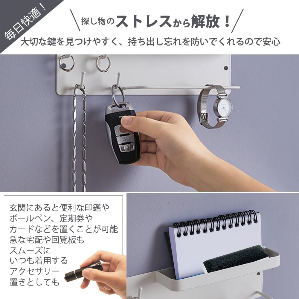 Recommended for: For those who have trouble storing keys and small items in the entryway or kitchen; If you are looking for a storage item that combines ease of use and design, you want to easily attach it with strong magnets; This key hook and holder will make organization easier. Make your life more comfortable! EASY ACCESSORIES: Wall mounted for easy access to your essentials Efficient use of space: efficient storage even in limited spaces. Neatly organize your entryway and kitchen that tends to be cluttered. Durable: Sturdy design made of stainless steel and alloy steel. Long lasting for everyday use. Equipped with strong magnets: secure to iron doors and metal surfaces. Easy to install and can be used anywhere. Multi-functional Design: In addition to storing keys and small items, it also has a bar that can be used to organize your smartphone, glasses, etc. SLIM AND STYLISH: Simple but highly functional. Designed to match any decor, it can be widely used in the entryway, living room or office. Secure rounded design: rounded corners for safety Safe for homes with small children. Compact size: width 9.8 inches (250 mm), height 2.8 inches (70 mm), depth 1.7 inches (42 mm), space saving design allows you to install it anywhere.