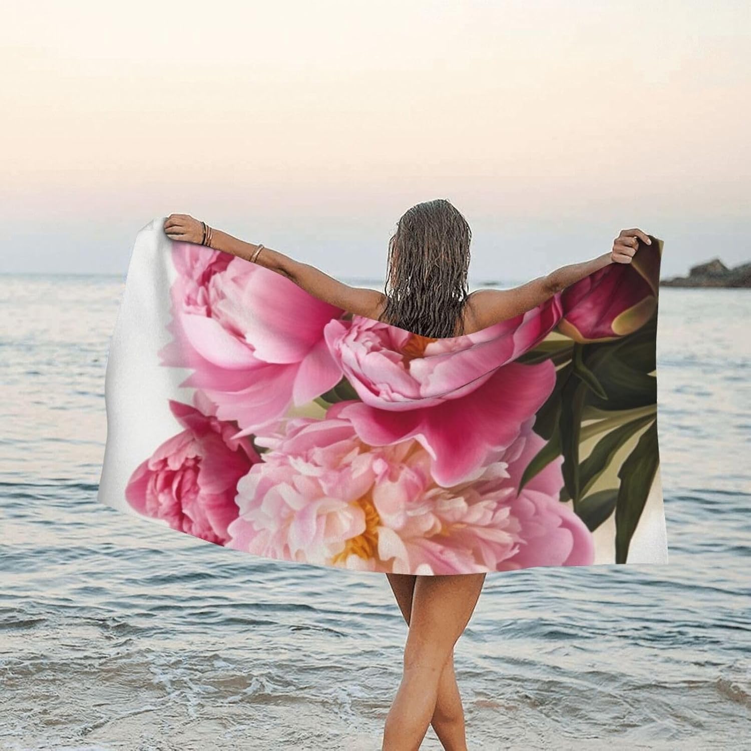 designpeony flowers blossom compact towel for camping are designed with one-sided printing. The towels are equipped with special packaging bags and carabiners, which are convenient for packaging and hanging, and can be hung anywhere to dry quicklymaterialcompact towels for swimming is made of microfiber, which is more absorbent than standard towels, dries quickly, is lightweight, and small enough to easily fit the towel into a gym bag or backpackscene cotton towel for beach carabiner on the bag, can be attached or packed into your bag, the beach towel can also be used as a sports towel, travel towel, yoga towel or used as a beach, bathing, swimming pool, swimming, boating, sunbathing, mats for spa, sauna, water park, climbing, fitness, yoga, travel, camping, hiking, picnic, travel, outdoor and sports, etccomponentbeach blanket for swimming have buckle webbing, easy to hang and air dry, pvc packaging bag, equipped with a carabiner, easy to store and carrywashinglightweight towel for swimming machine washable, wash before first use, just hand wash or machine wash, air dry