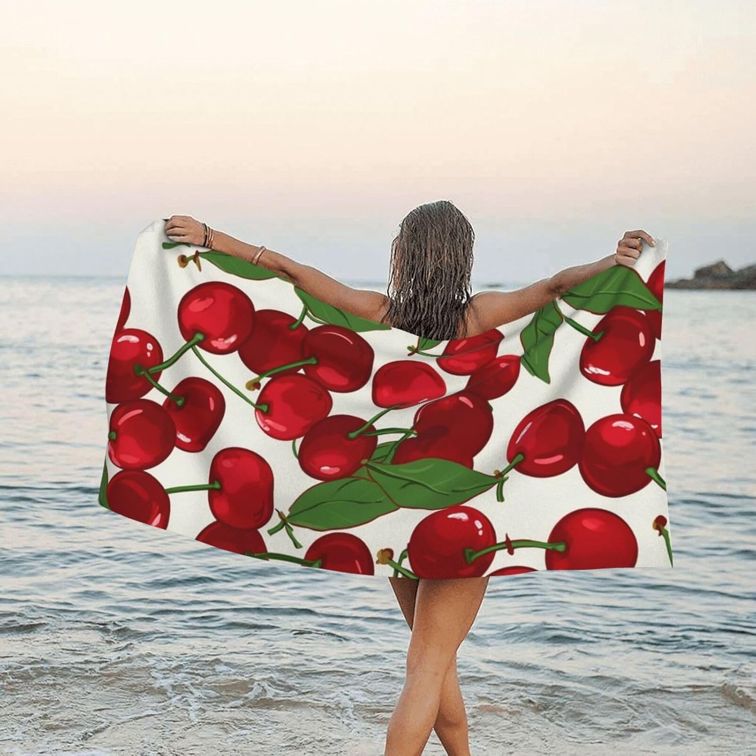 designRed Cherries compact towel for camping are designed with one-sided printing. The towels are equipped with special packaging bags and carabiners, which are convenient for packaging and hanging, and can be hung anywhere to dry quicklymaterialcompact towels for swimming is made of microfiber, which is more absorbent than standard towels, dries quickly, is lightweight, and small enough to easily fit the towel into a gym bag or backpackscene cotton towel for beach carabiner on the bag, can be attached or packed into your bag, the beach towel can also be used as a sports towel, travel towel, yoga towel or used as a beach, bathing, swimming pool, swimming, boating, sunbathing, mats for spa, sauna, water park, climbing, fitness, yoga, travel, camping, hiking, picnic, travel, outdoor and sports, etccomponentbeach blanket for swimming have buckle webbing, easy to hang and air dry, pvc packaging bag, equipped with a carabiner, easy to store and carrywashinglightweight towel for swimming machine washable, wash before first use, just hand wash or machine wash, air dry
